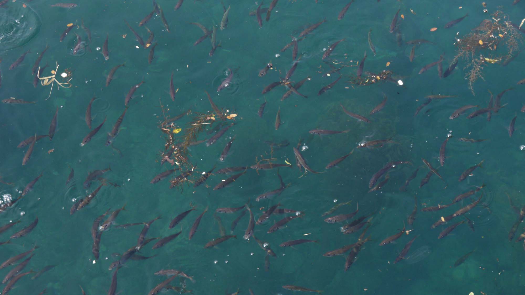 目測23㎝~25㎝級のアユが、推定100匹以上居る様です