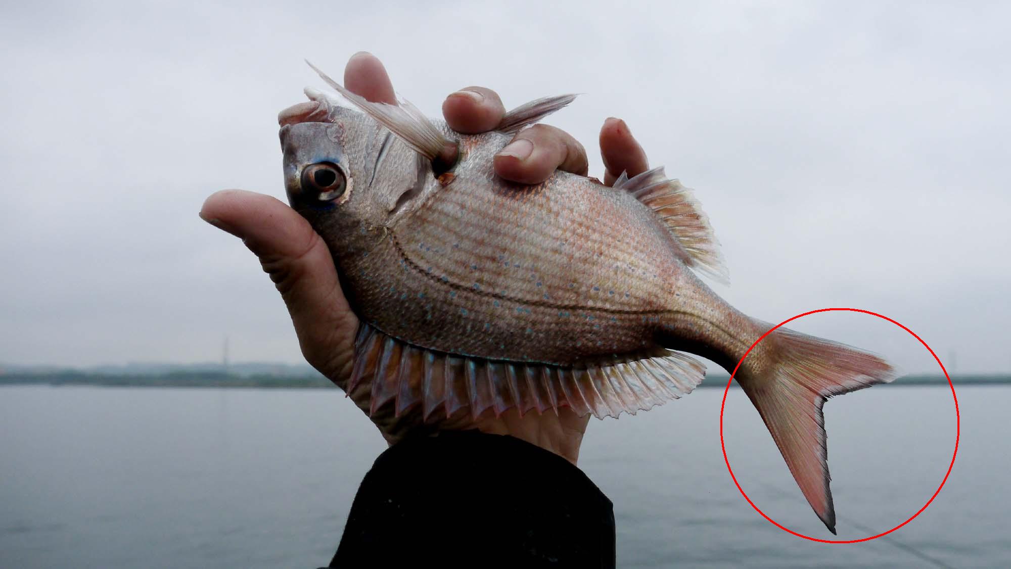 チダイは尾の切れ込みが赤い