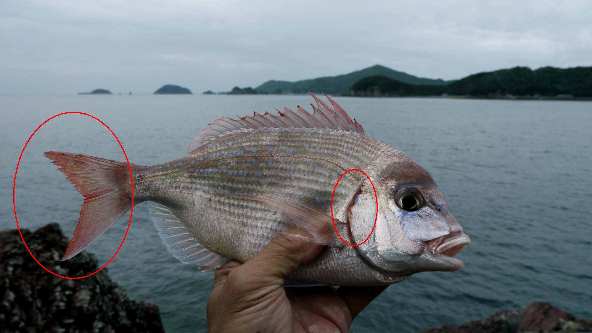 両者の見分けのポイントは、尾の切れ込みの色。マダイは黒色でチダイは赤、更にチダイはエラブタの縁が赤で、血の色の赤だからチダイだと覚えましょう。