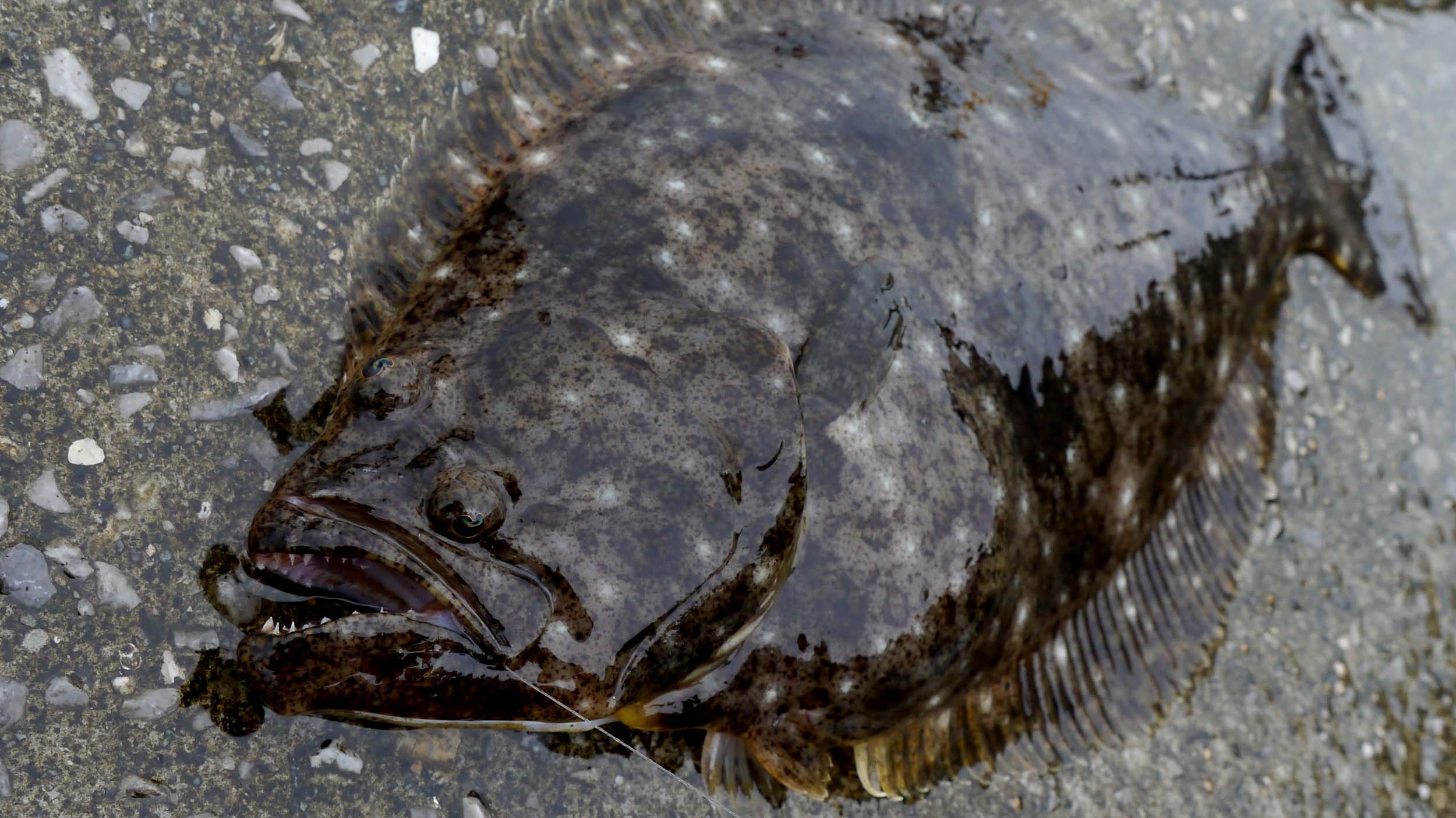 泳がせ釣りで仕留めた、今年初のヒラメは40㎝級。