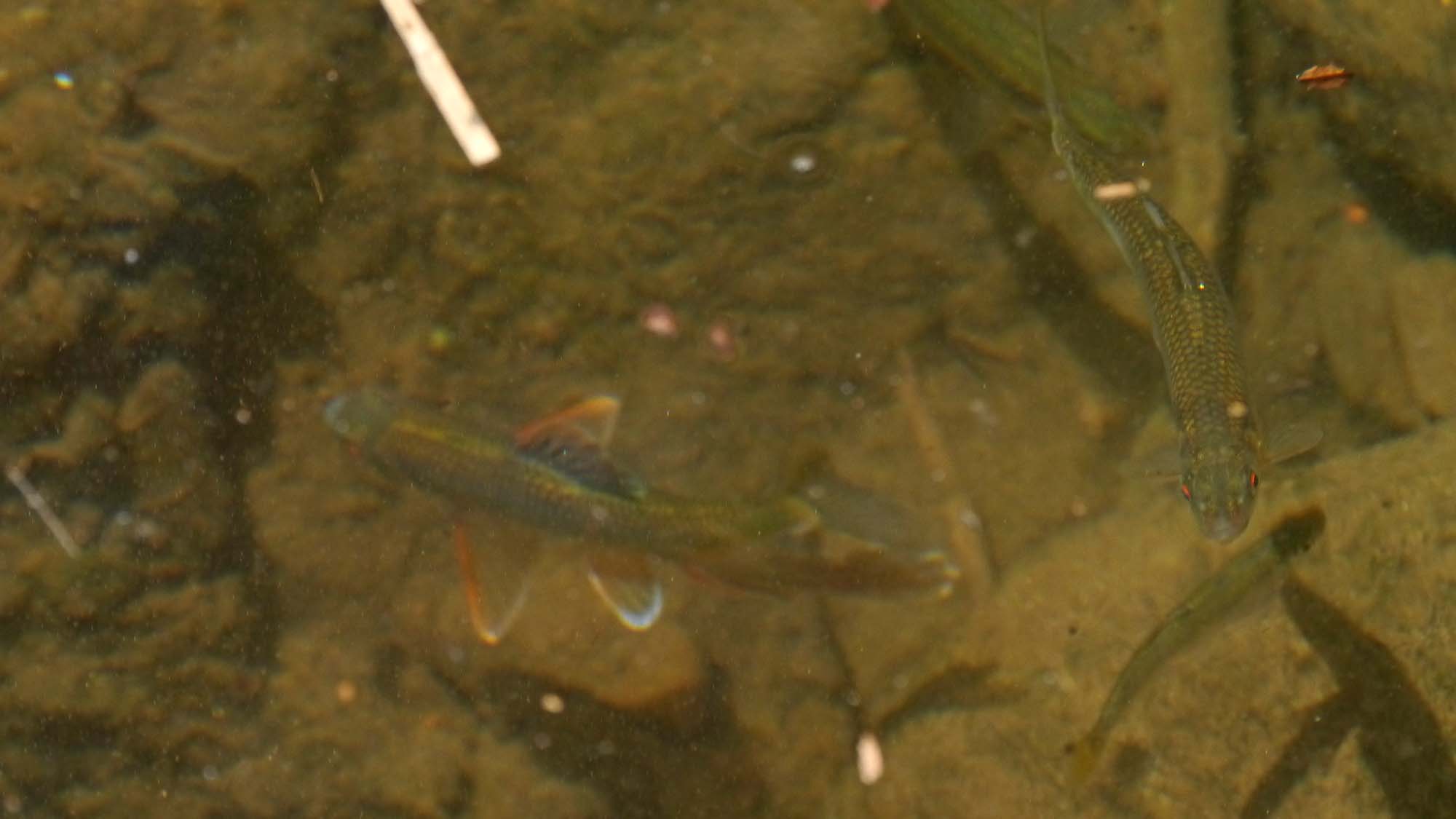 潜ってアユを追っていますが、ことごとく逃げられていました