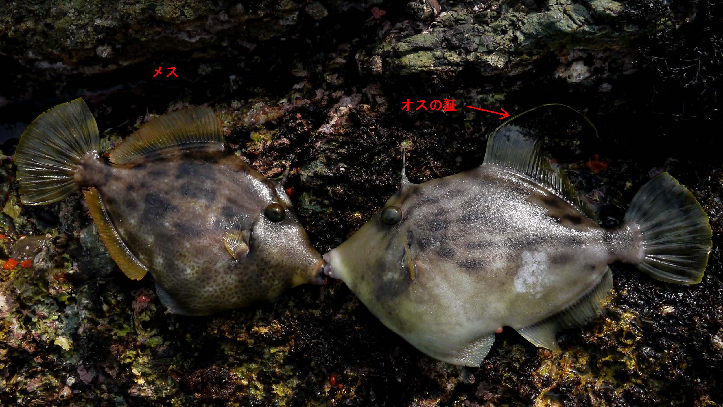 カワハギのメスが釣れて、その後オスも釣れたので並べました。