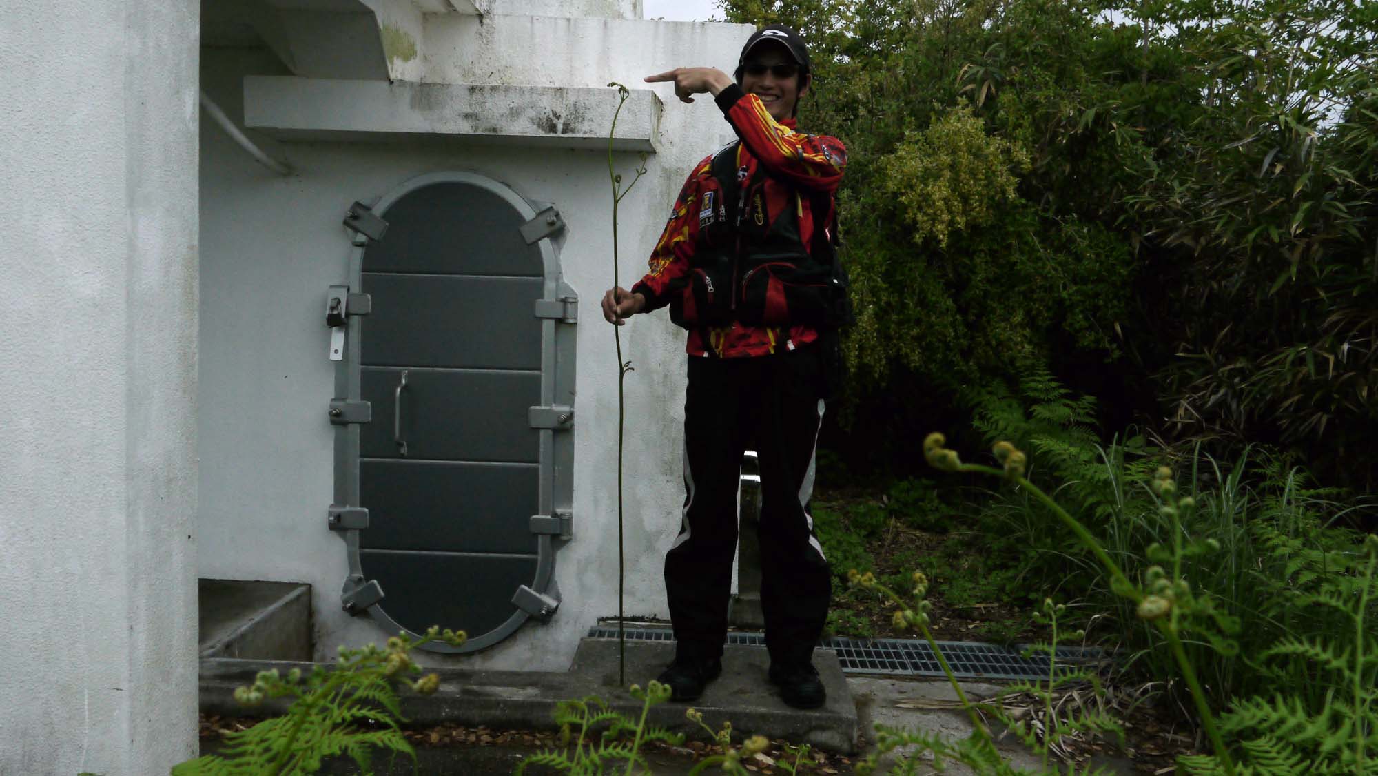 今回のワラビは食べ頃を過ぎて、葉が開き始めていますが、メーターオーバーのワラビが生育する証拠として、土から20㎝くらい上で採ったワラビを紹介します。木村君の身長が168㎝なので、ワラビがどのくらい伸びるか分かるでしょう。