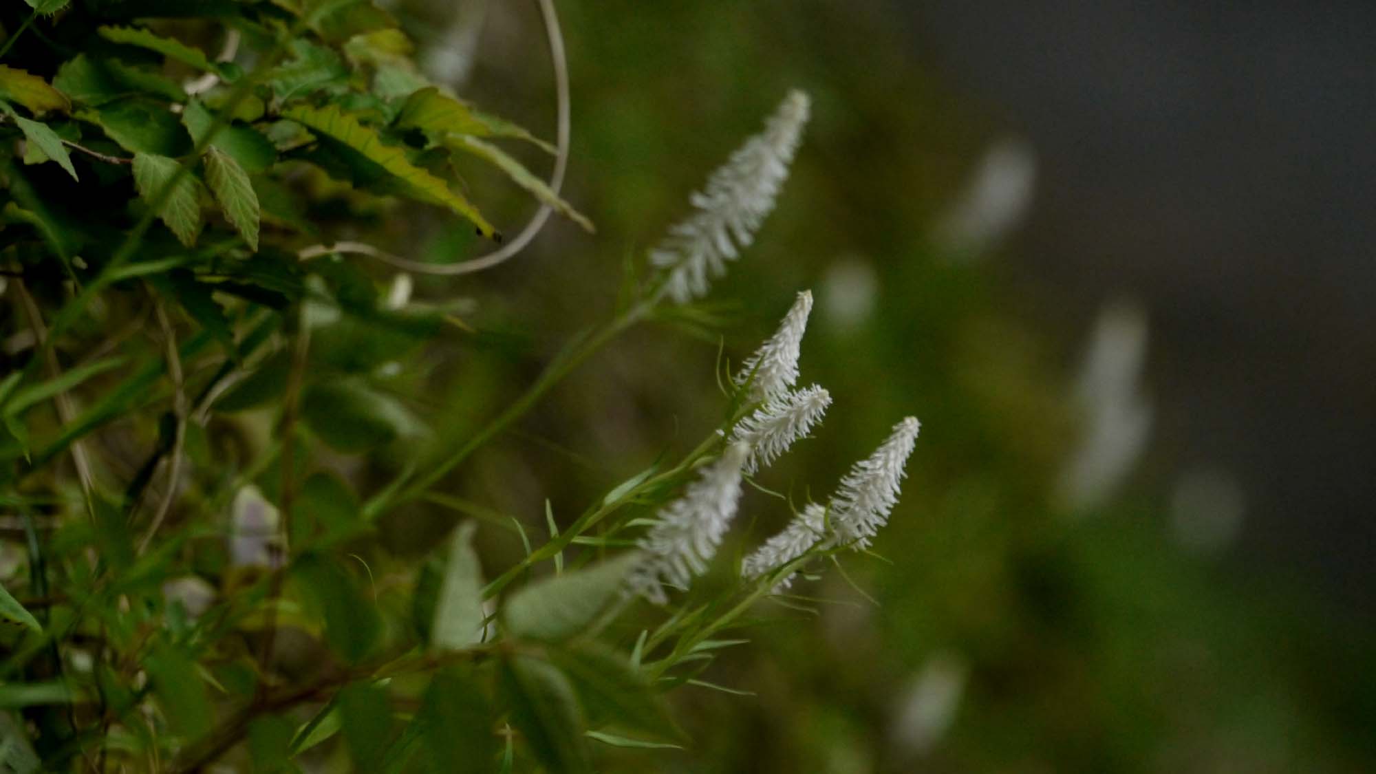 サンコウチョウ・ツツドリ・アカショウビン・クロツグミ・センダイムシクイなどが鳴いていますが、今日の山は風が強く、小鳥たちは姿を現しません。