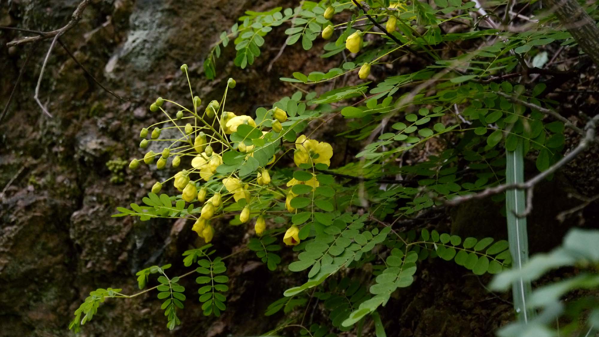山の斜面に細々と花を着けていました。