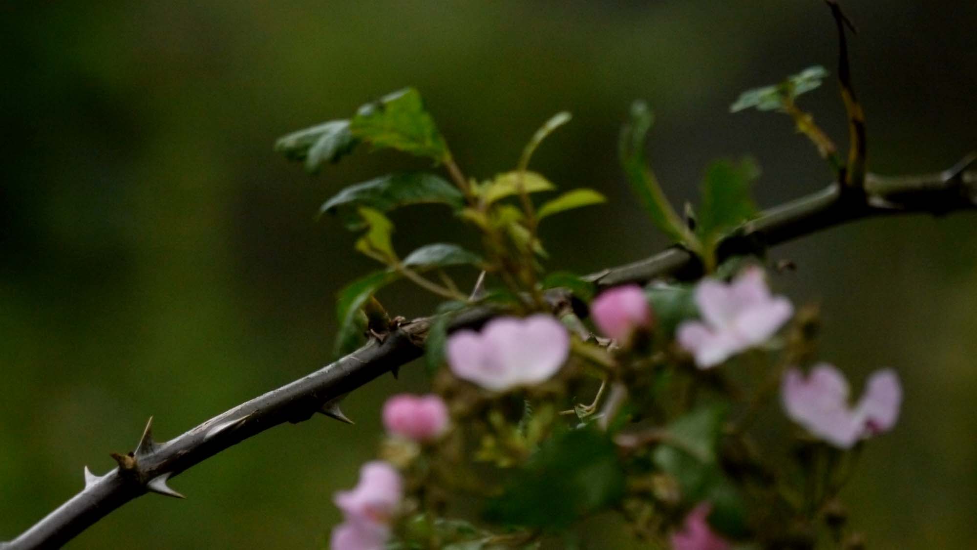 宇曽山の道沿いには、ピンクの花を着けているノイバラが1株。