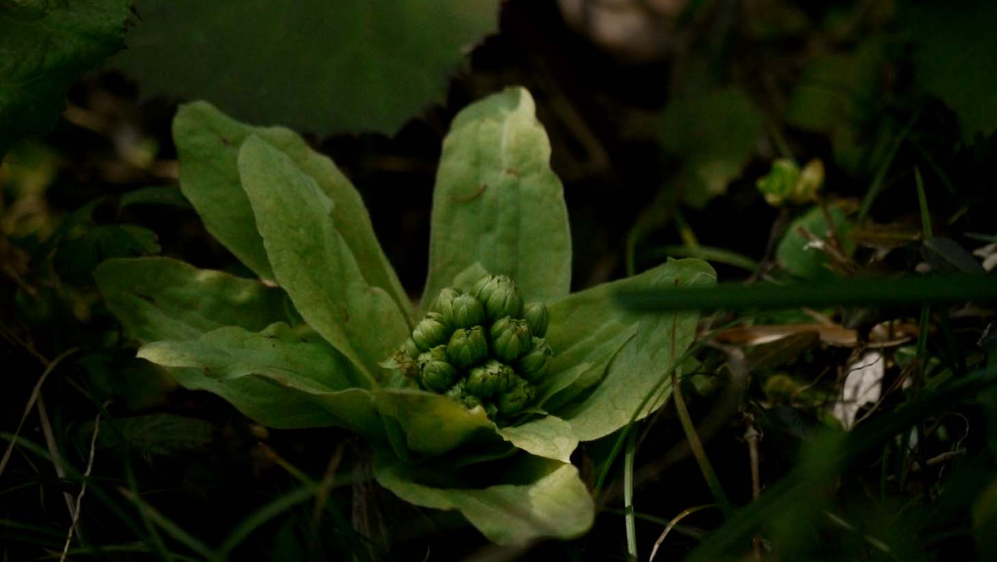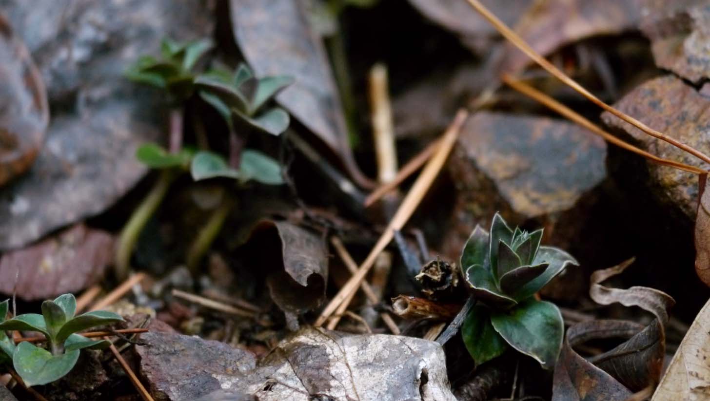 林道の脇にリンドウの株が出始めています・・・寒~い。