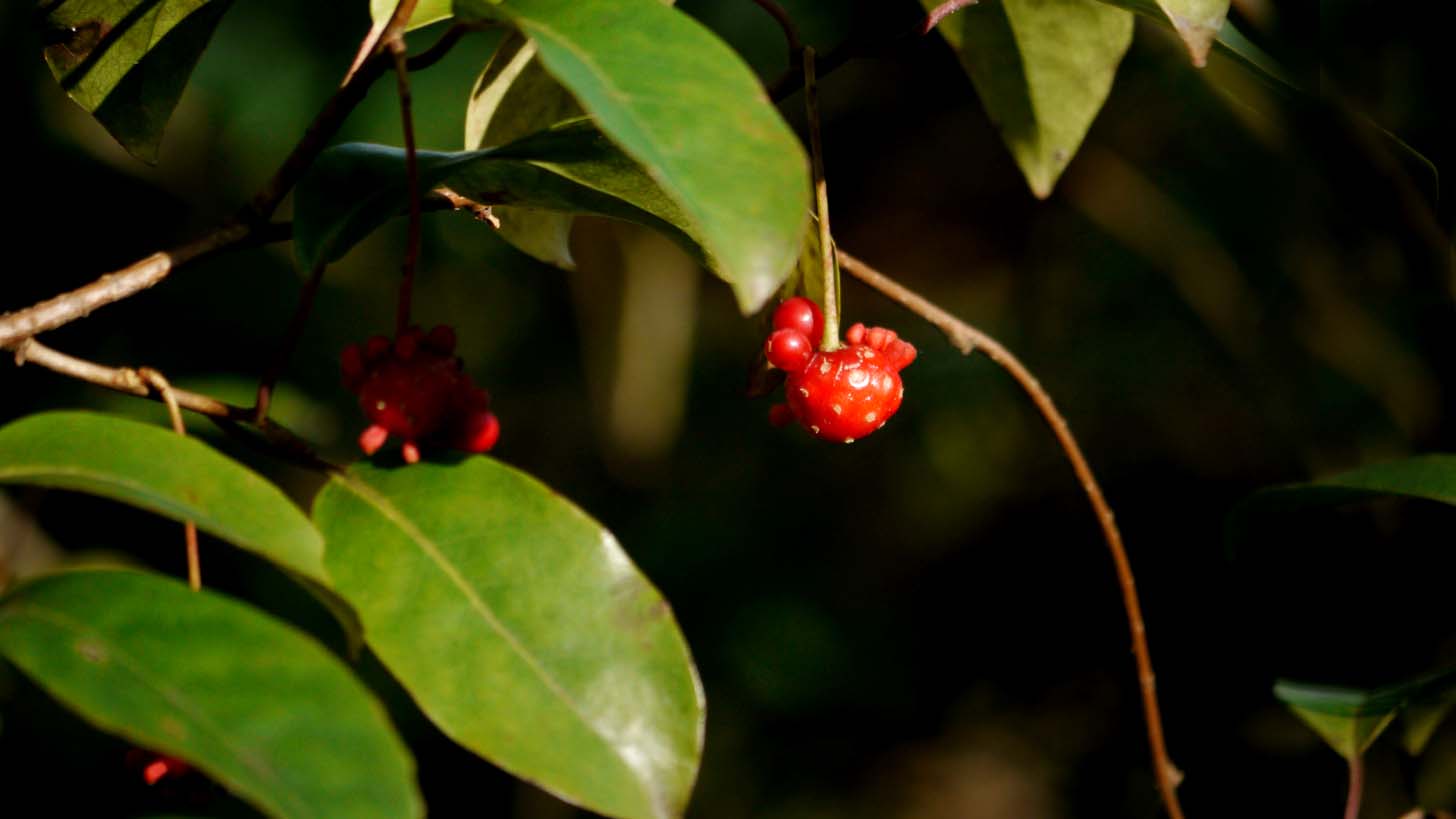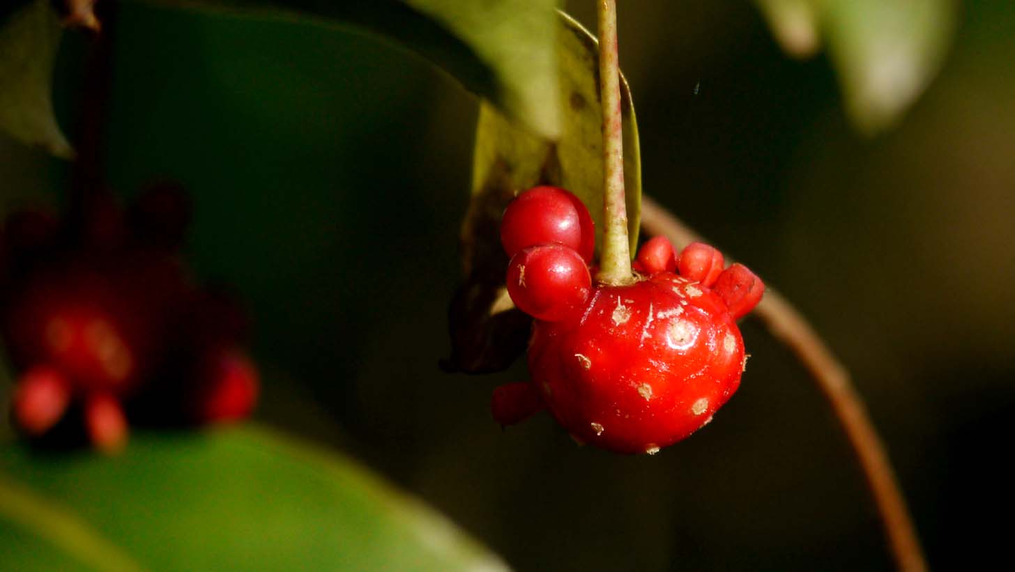 冬に赤い実を数個ほど着けて、ひっそりとたたずんでいます。
