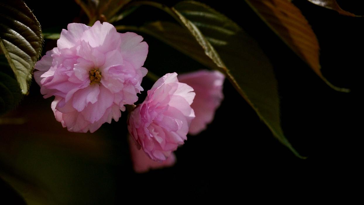 ボタン桜の下にシャガは2輪ほど咲いています。