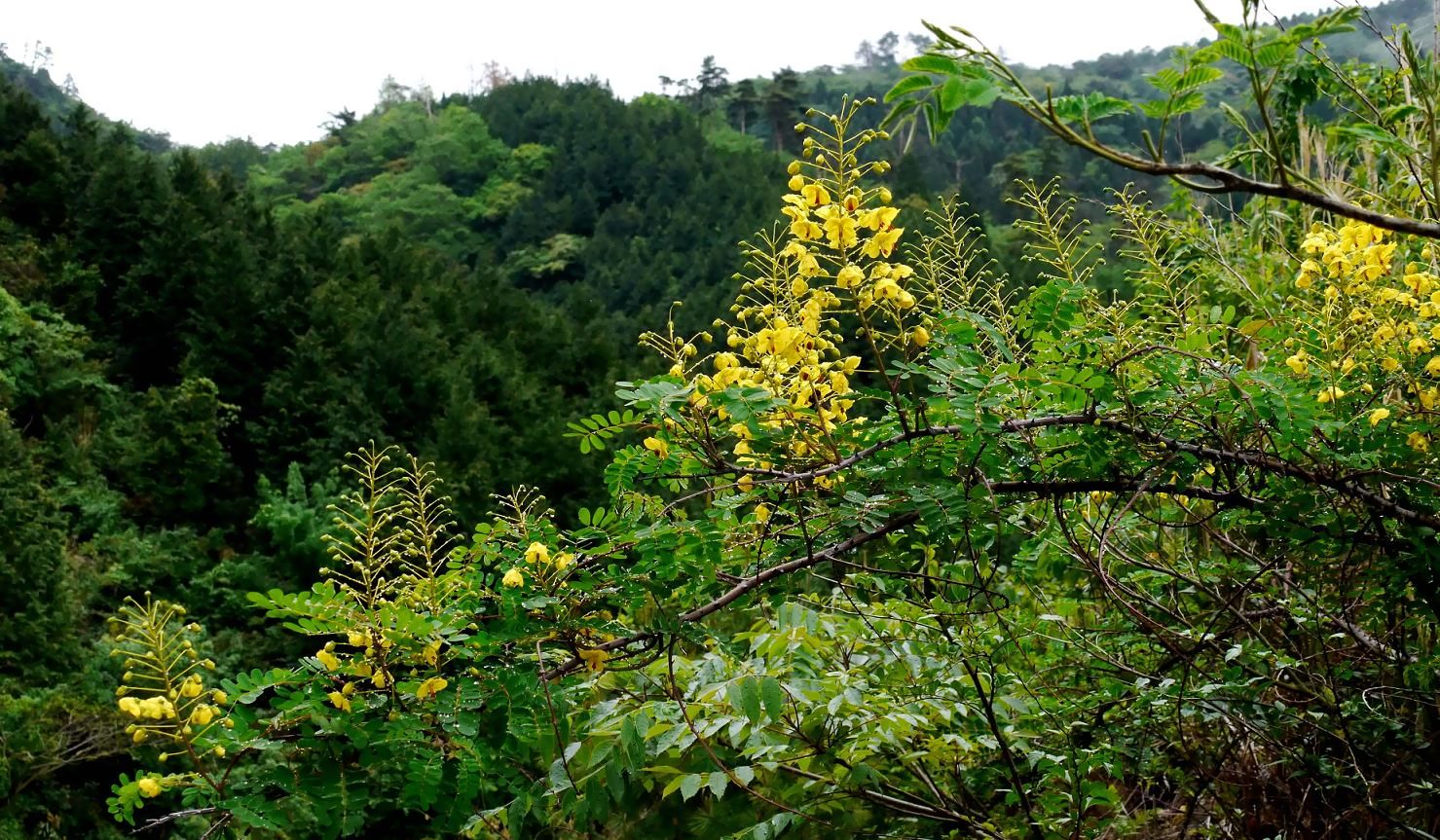 近づいてみると、ハギに似た木が黄色の花を付けている。