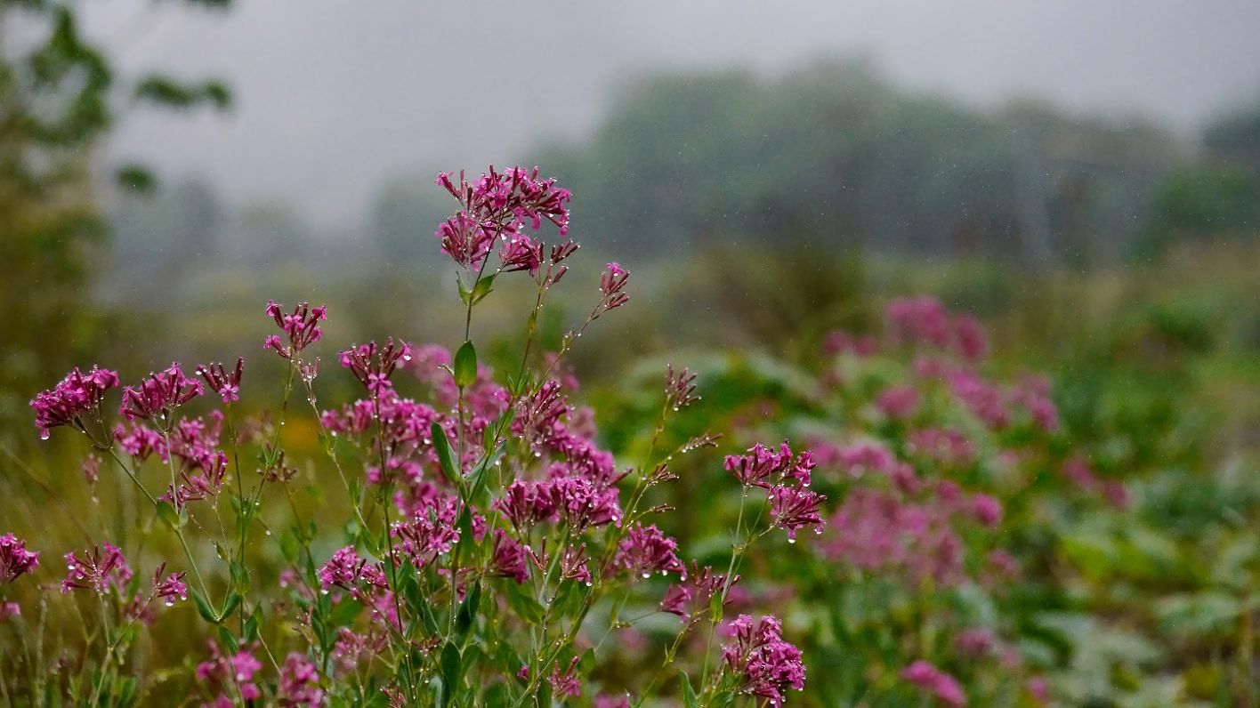 午前中の雨が霧雨に変わり、花や植物を撮るベストな時間です。