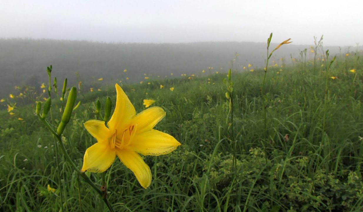 今が咲き盛りのユウスゲの群生