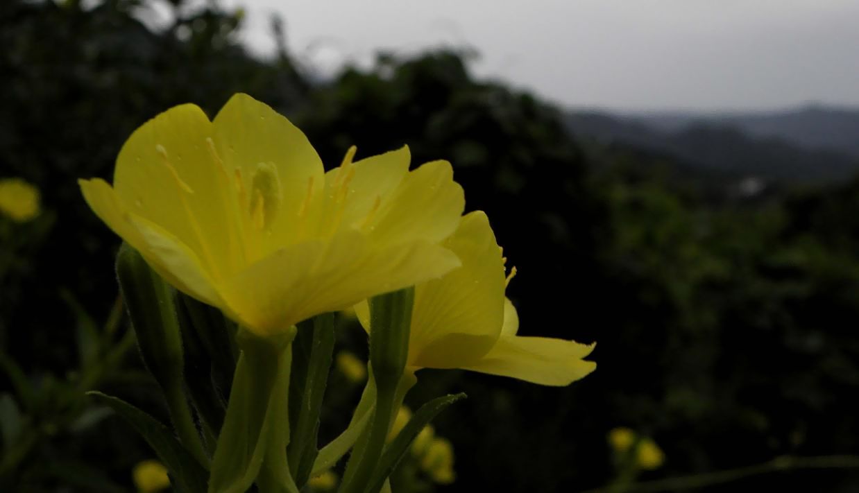 オオマツヨイグサ、山の道端に沢山咲いています