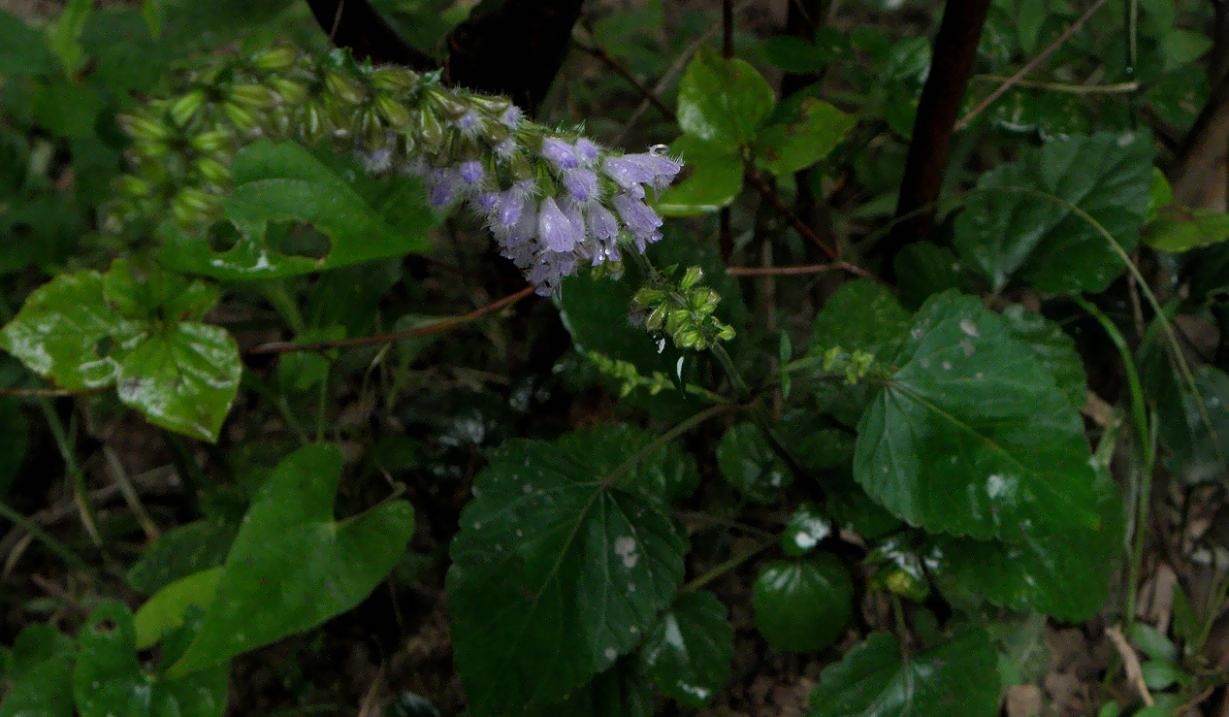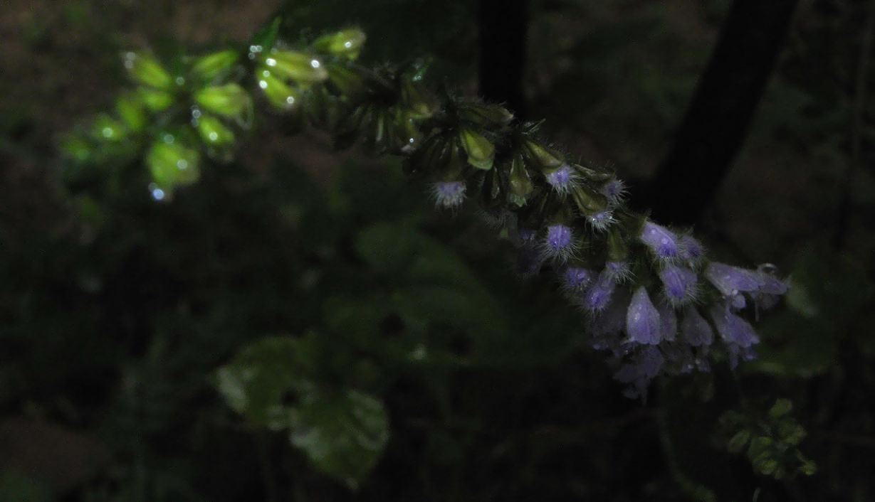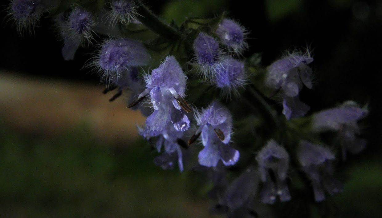 茎は四角形で花には無数の毛、薄紫の青が綺麗です。
