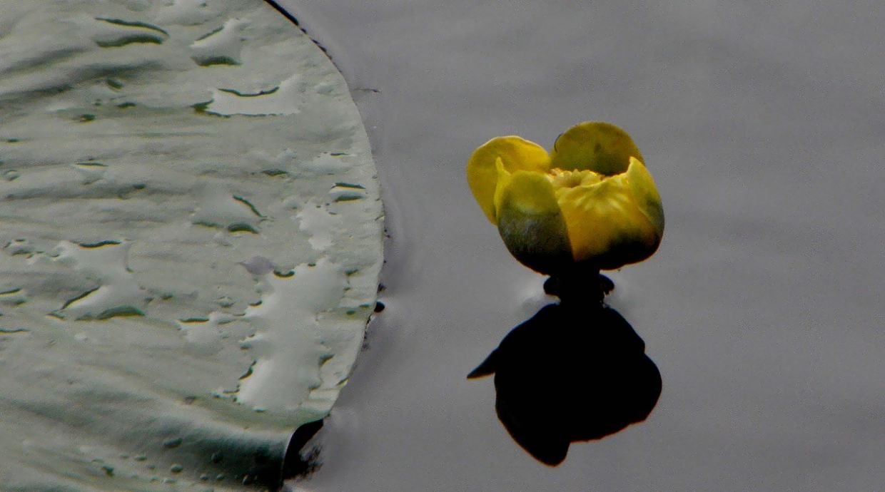 池の隅に浮き草らしき植物、黄色い小さな花を少しだけ付けていました。何気に写真を撮っていたのですが、コイと花を写す事が出来ました。更にはイシガメが2匹泳いできました。本当に嬉しい出会いです。