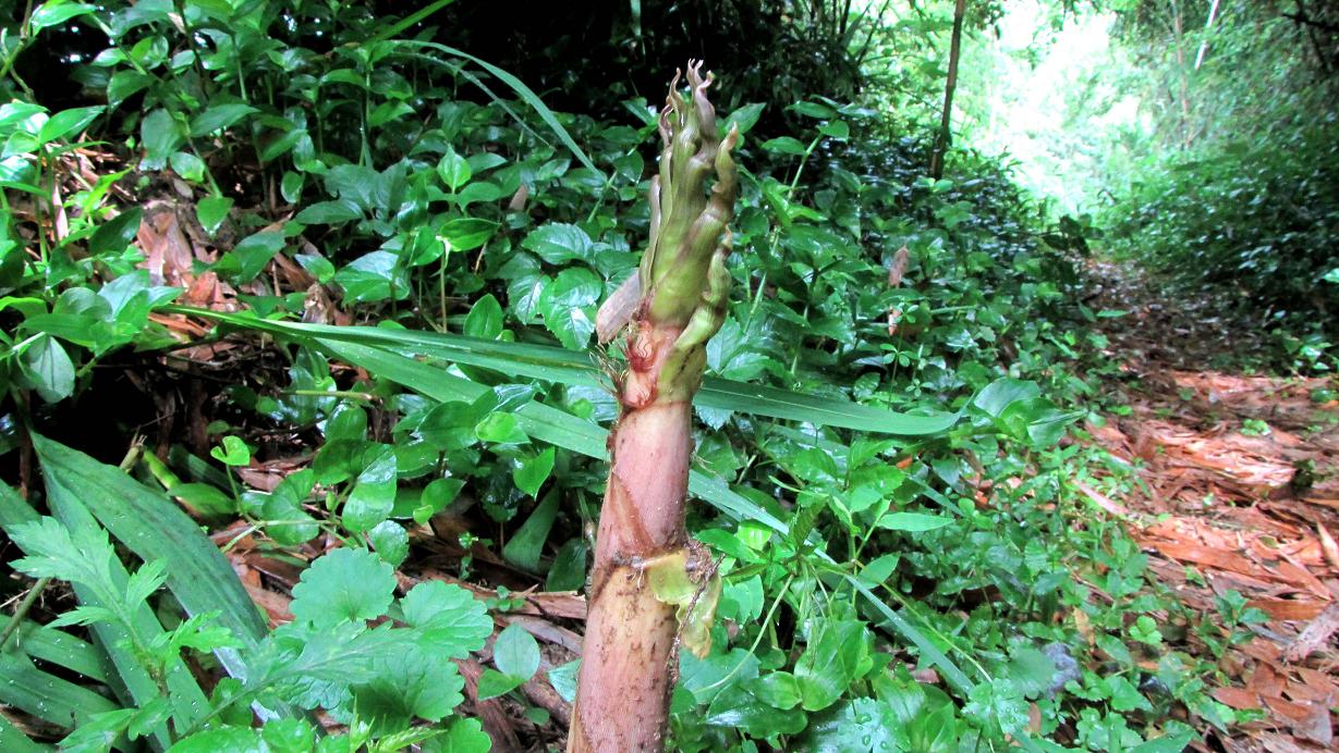 今週の始めには、女竹の筍が突き出ているのを確認です。