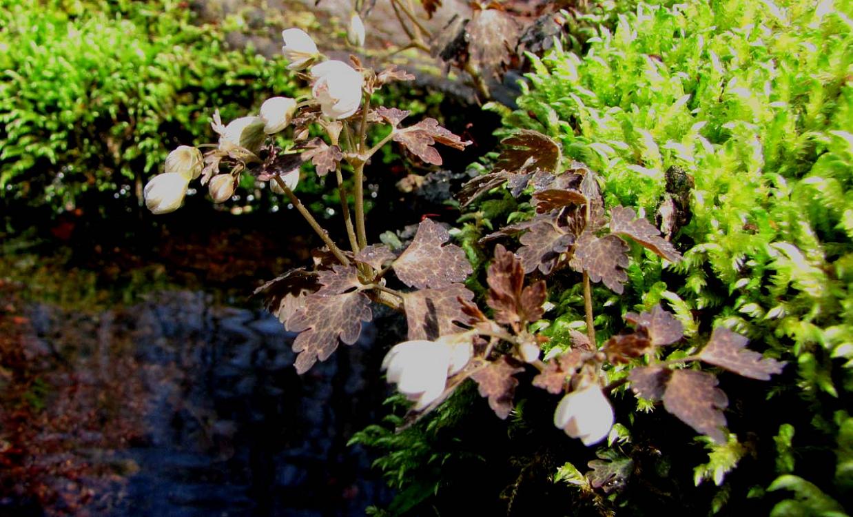 岩や岩石に着いたコケと一緒に生えています。日陰を好んで群生し、小さな花を着けています。花の直径は5~8mm程度で、草丈は10~20cmと小さく可憐な花。