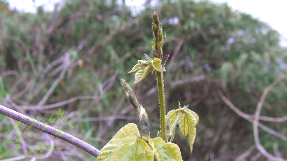 名前の由来は、春先に赤い芽が出る。葉っぱがカシワに似ているアカメガシワと言う事と、赤い芽が出て、その葉っぱがしわしわだからアカメガシワ。