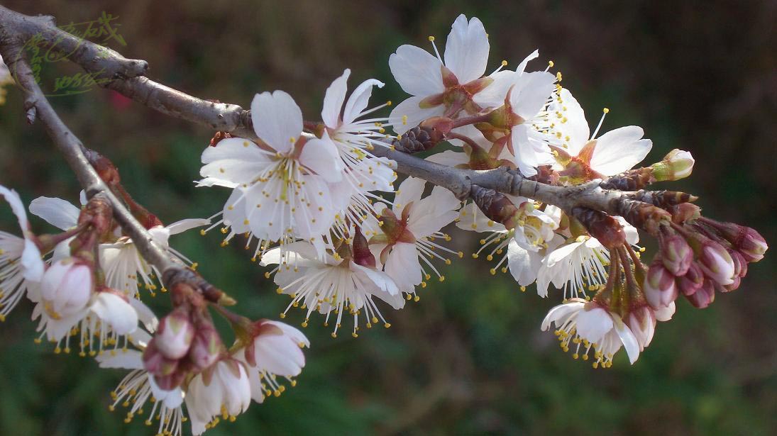 こちらで見かける桜の花で一番最初に開花するのがコレ。先日梅と桜の花の違いを話したばかりなので映す事にした。