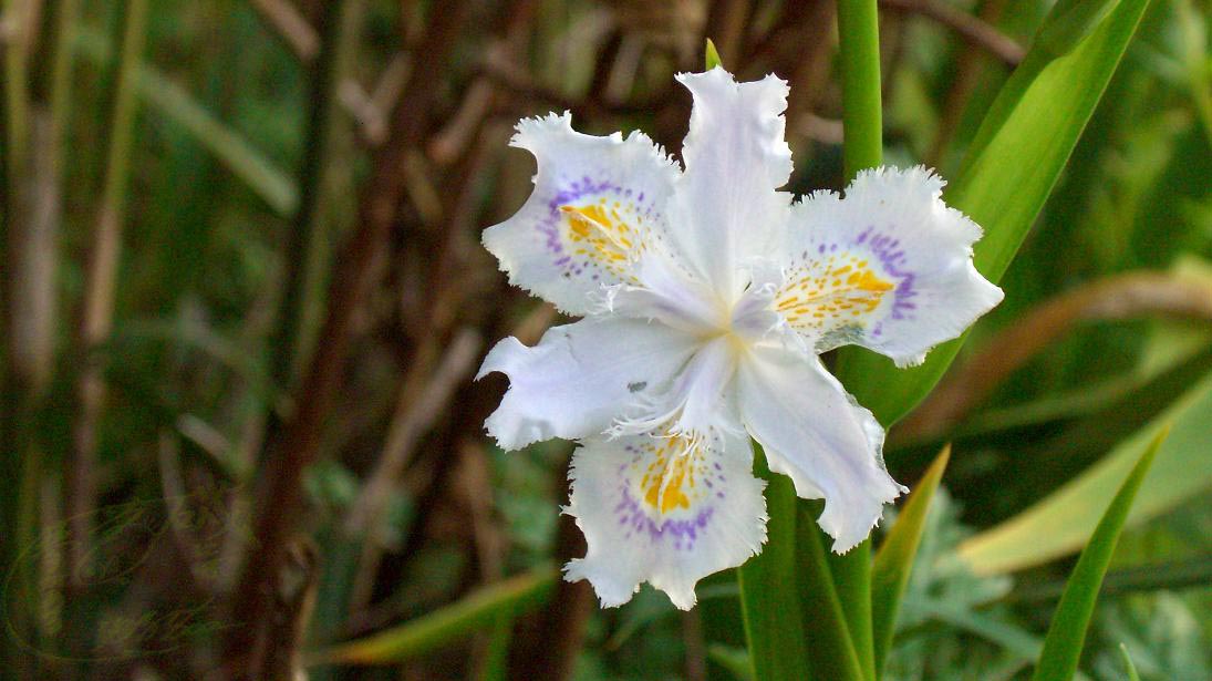 アヤメ科の植物。小さい頃から綺麗な花を咲かせる草として知っていた。土手や杉林の中など、やや薄暗い所などで綺麗な花を咲かせる。