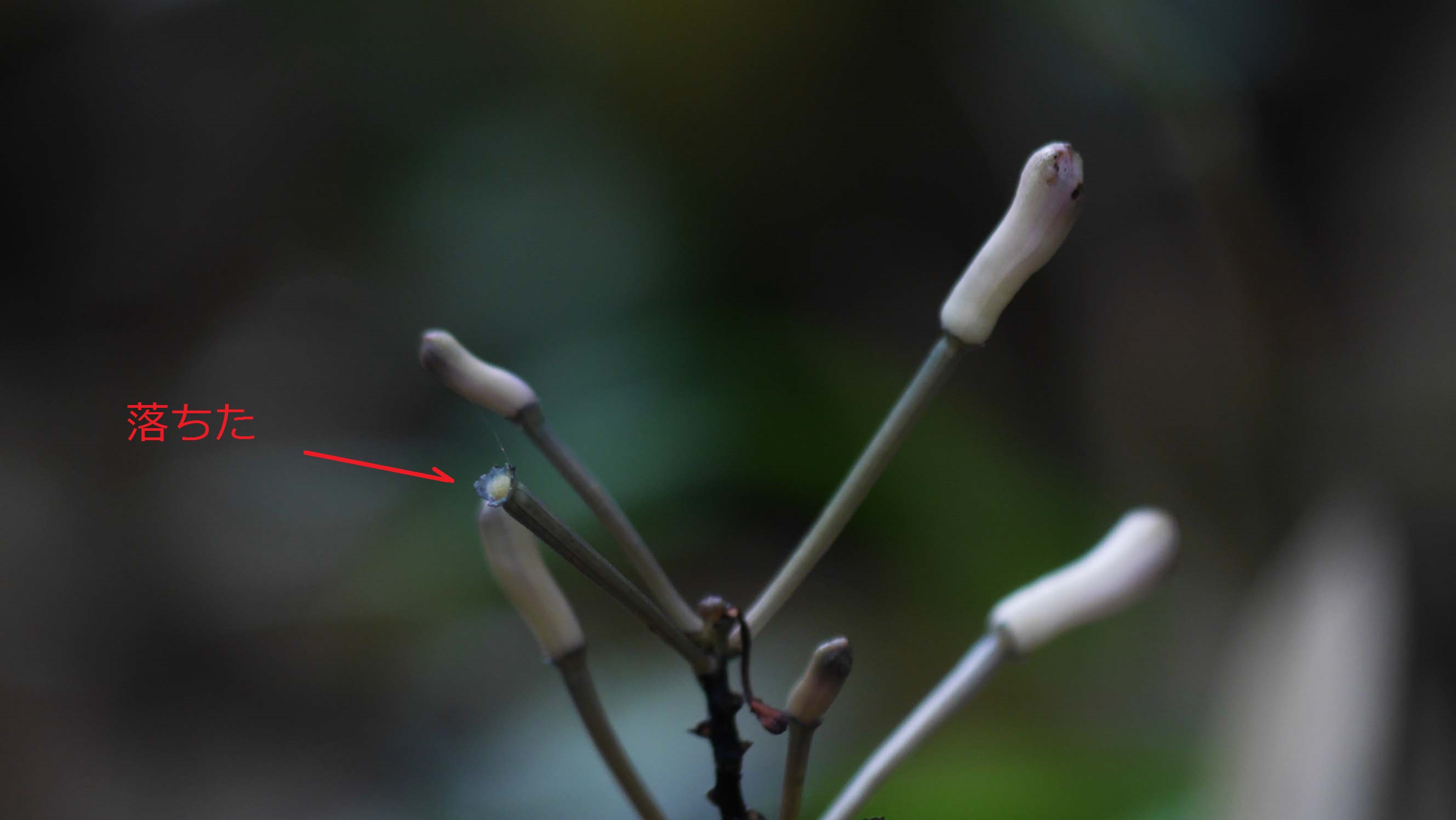 花弁が蕾から離れかけて、咲きそうだった蕾が落ちていました。