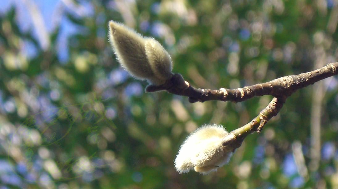 コブシに白い冬芽がたくさん付いていた。これがあの白い花になるのかな?寒さから芽を守るため、この様な綿みたいなのを付けている。