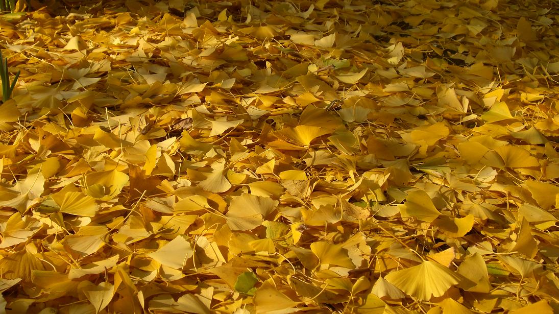 すっかり葉を落としてしまった銀杏の木の下は、黄金のじゅうたんとなっており、歩くと気持ちいい(^^♪