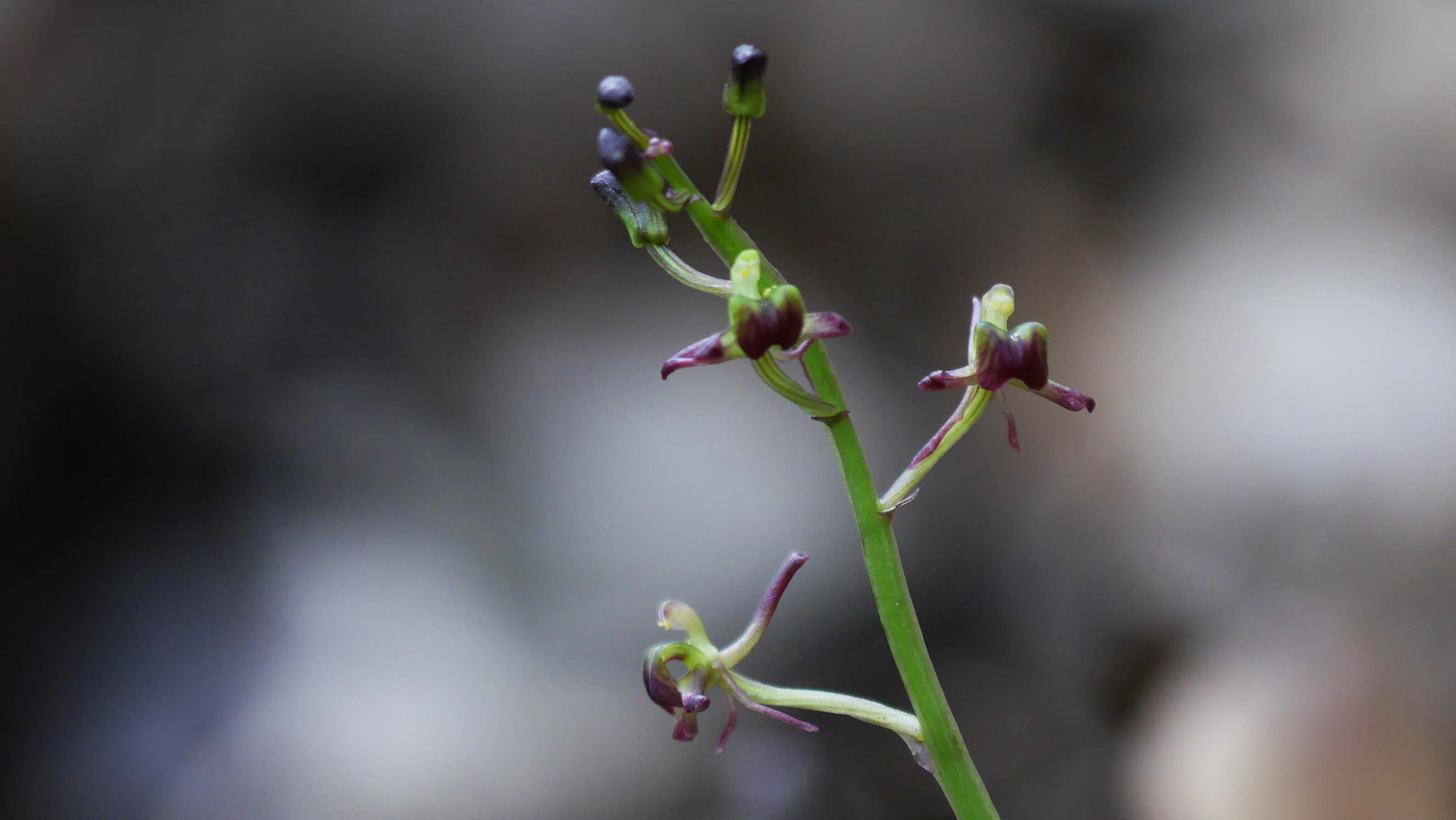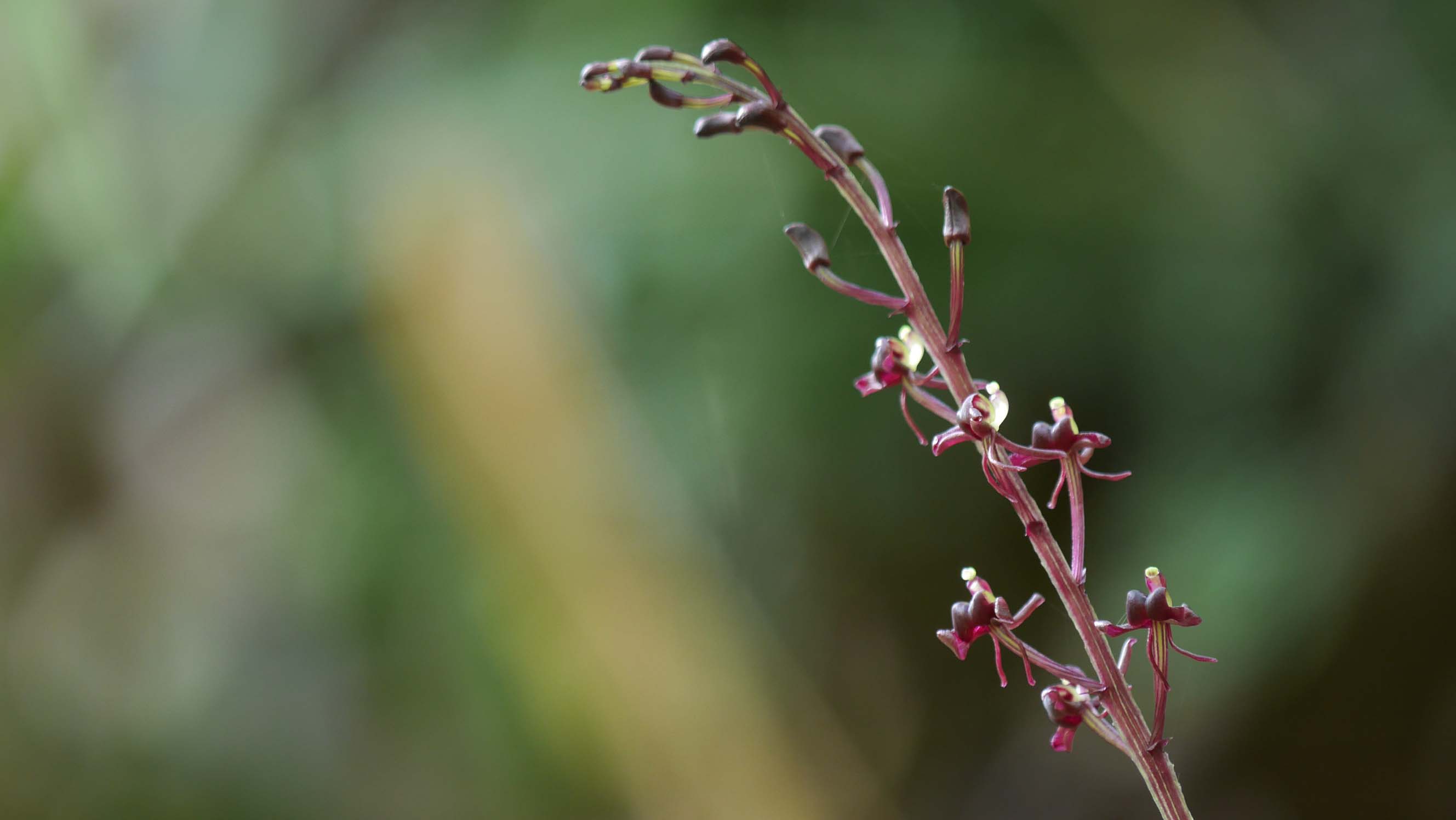 花茎が緑で花は紫のコクラン