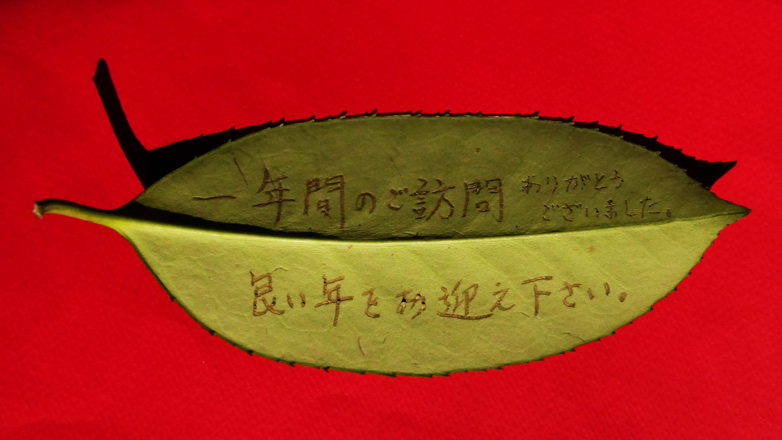 この木の葉っぱで、来年中学生になる女の子に年賀状を出しました。