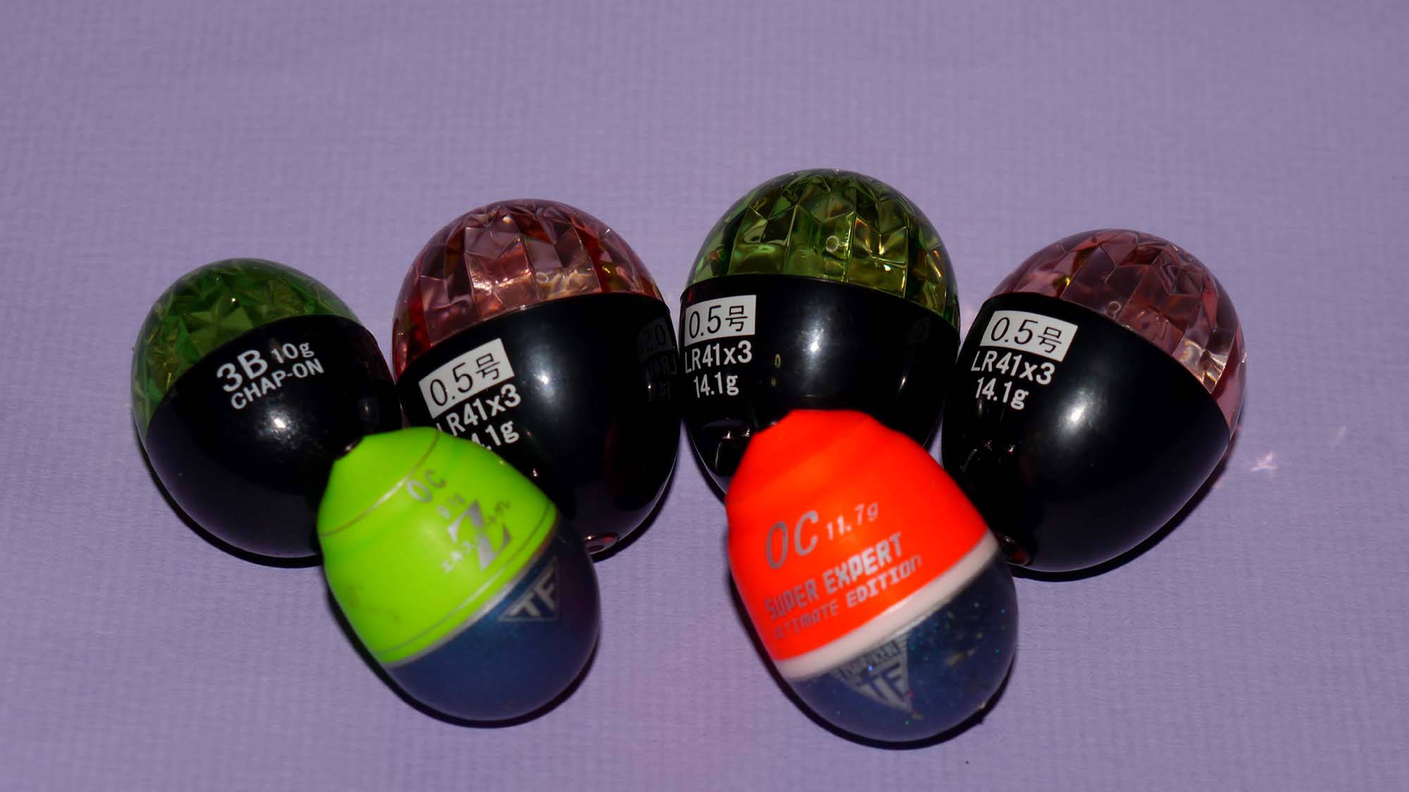 私がテストで一番多く使ったのは、グリーンのセミフロートタイプで1.7号、次が1.5号。そしてピンクのサスペンドタイプの1.7号を使いました。