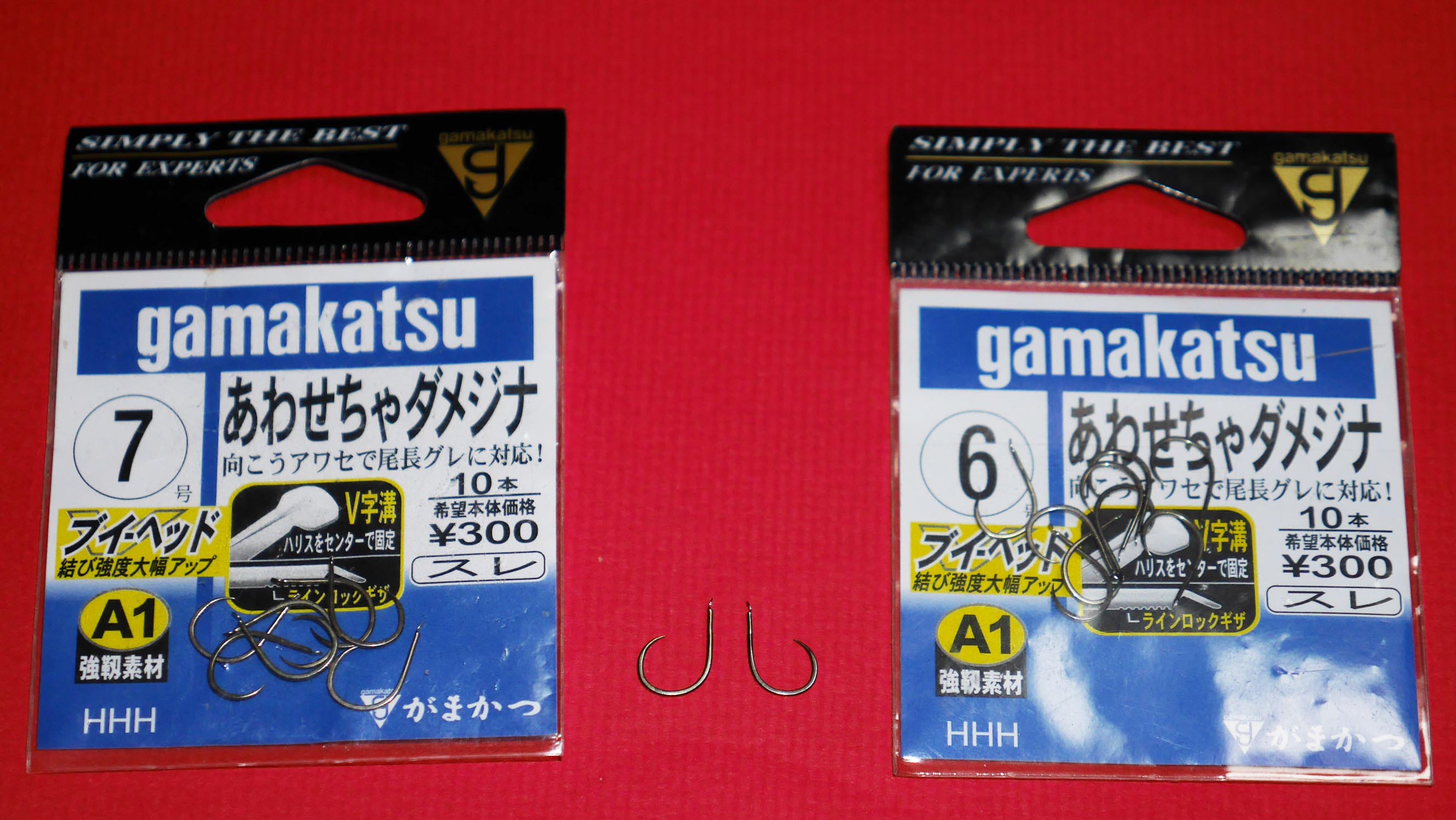 ワンランク小さい6号は、7号のハリに比べると通常のアワセではかかりにくくなる傾向にあるので、相当に喰いが悪い時に使う程度で、オナガ狙いの標準サイズは7号です。