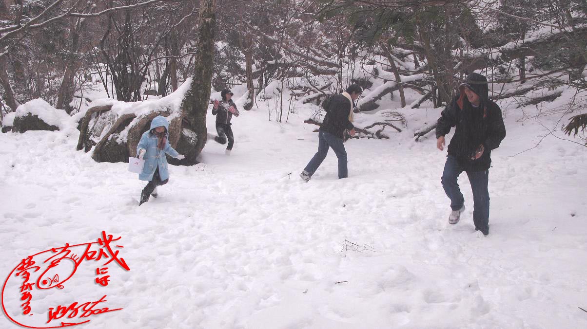 沖縄の出身者がいるので、雪と鳥を同時に見ようと男池までやってきました。・・・やっぱり子供は元気です。原生林の中は15cm前後の雪が有りますが、みんなでしっかりと雪合戦です。