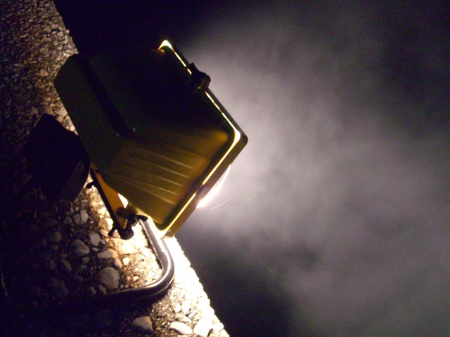 昨夜のタチウオ釣りにも500Wの灯光器が活躍した。タチウオが集まって釣りやすくなるのも事実だし、夜の海中を確認できるのが楽しい。