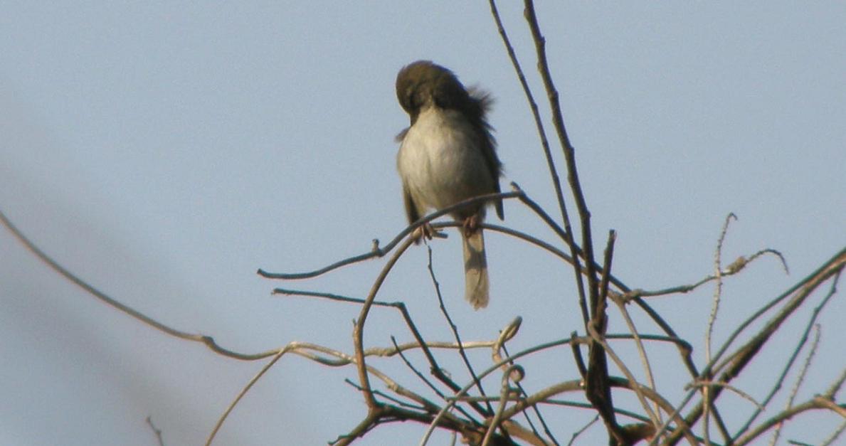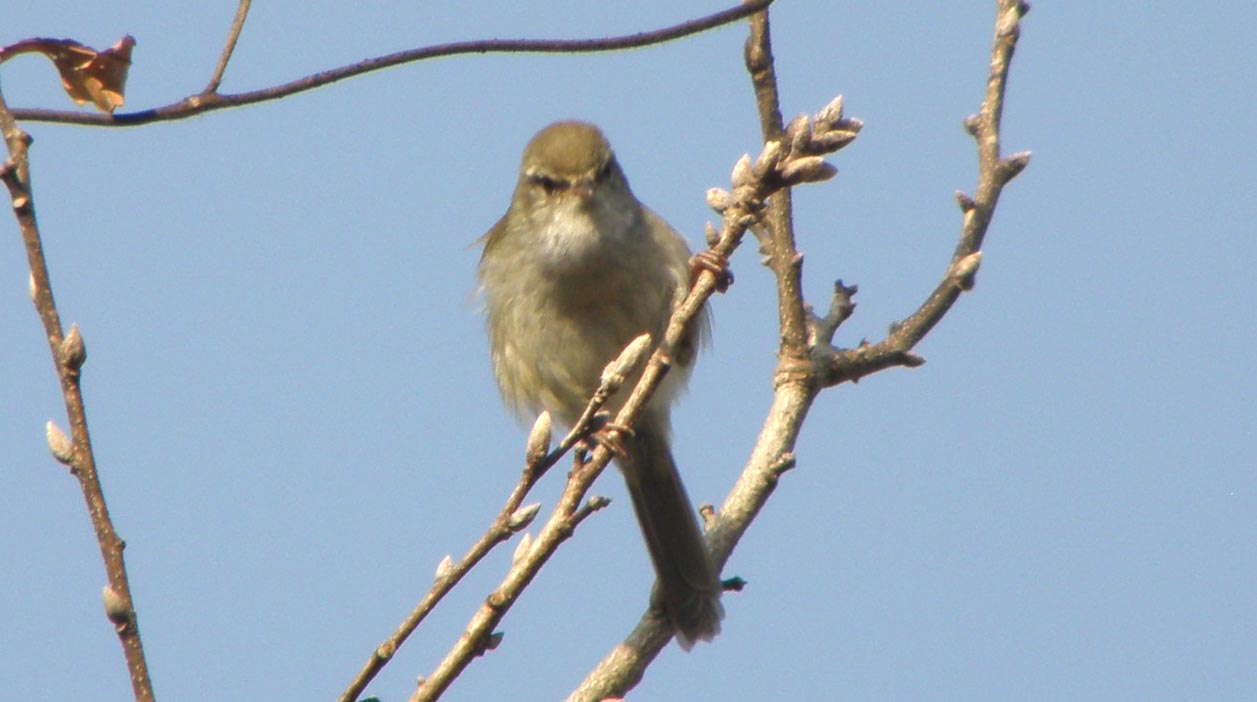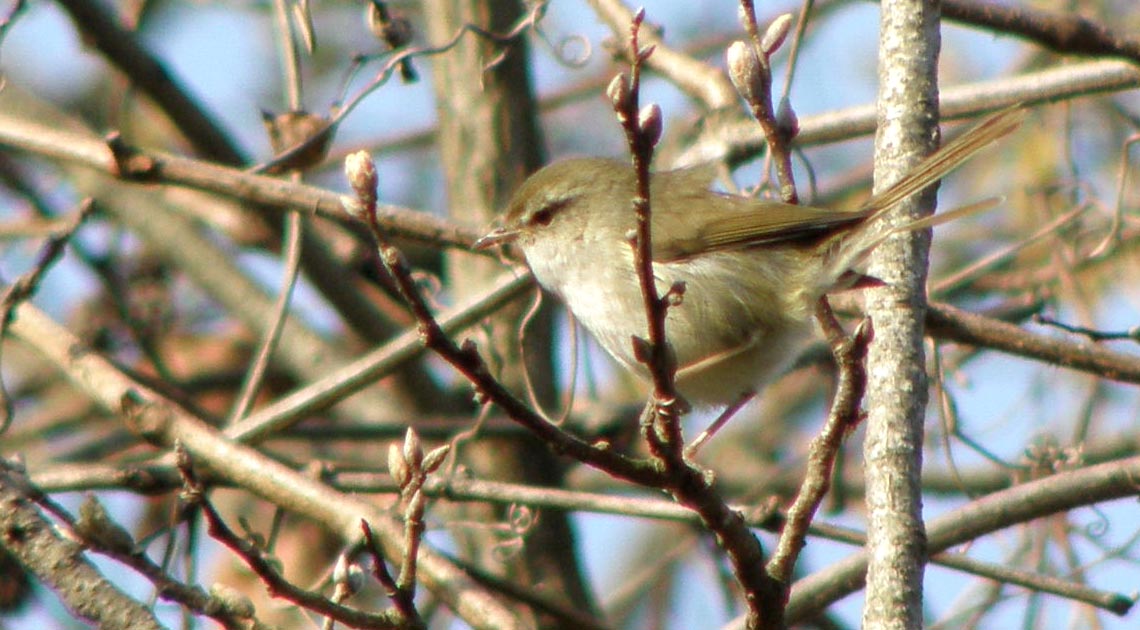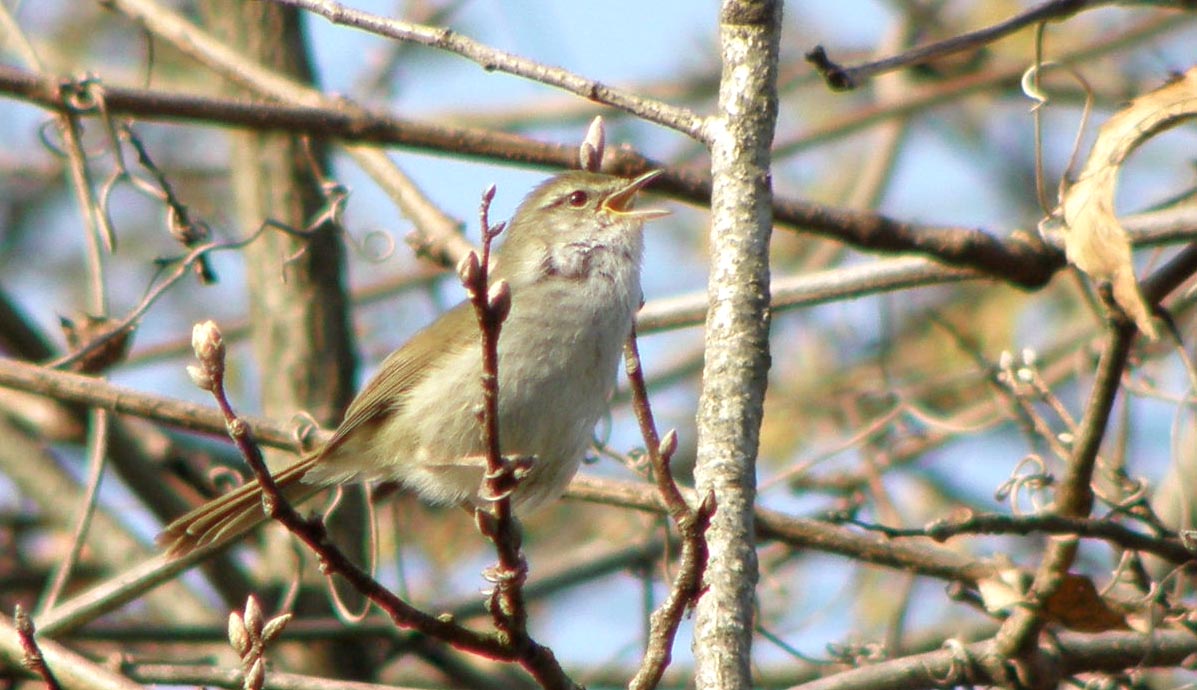 声はすれども姿は見えず。今朝のウグイスをじっくりとご覧下さい。