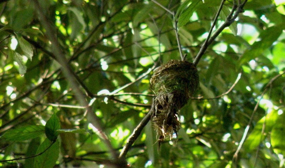 見つけたのが6時頃で、8時までの2時間でこれだけです。カメラを出して警戒され巣を放棄されると悪いので、彼らが居ない間に巣だけ絵にしました。