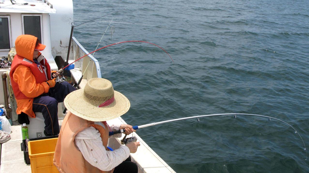 アジゴを付けて底から1~2mを泳がせてみたけど、ヒラメにも無視されています。女性陣はたくさん釣れるアジに夢中で、魚拓用のヒラメを狙おうとはしません。