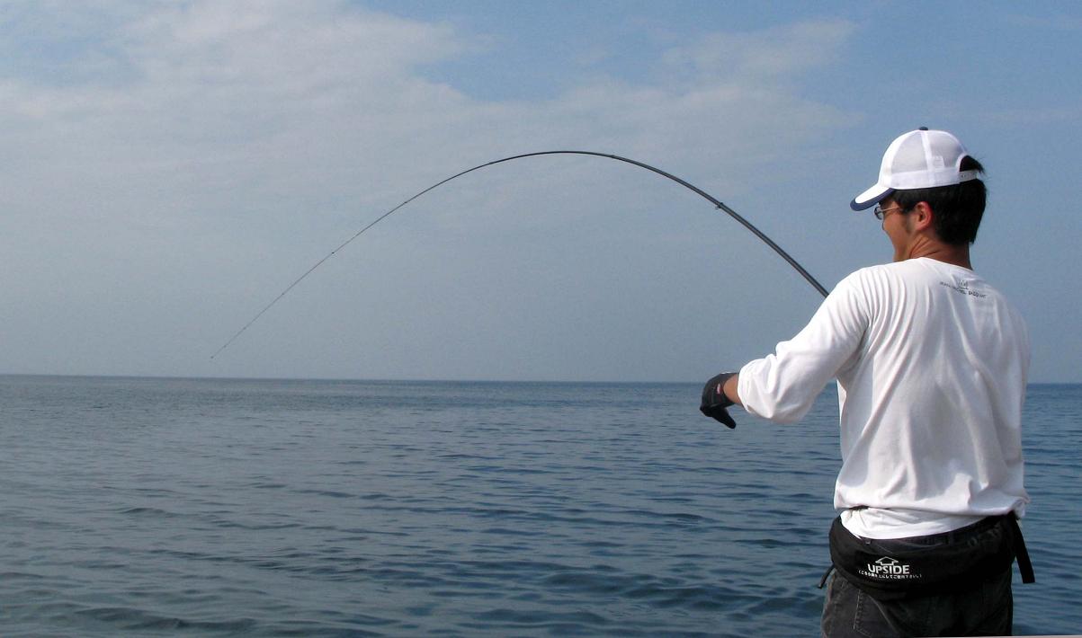 磯竿(グレ竿)は、竿の調子部分に荷重を掛けながら曲げる様にしましょう。一般的な磯竿の調子は7対3が多く、仕掛けの投入やヤリトリの時にはこの部分を意識して使うのです。