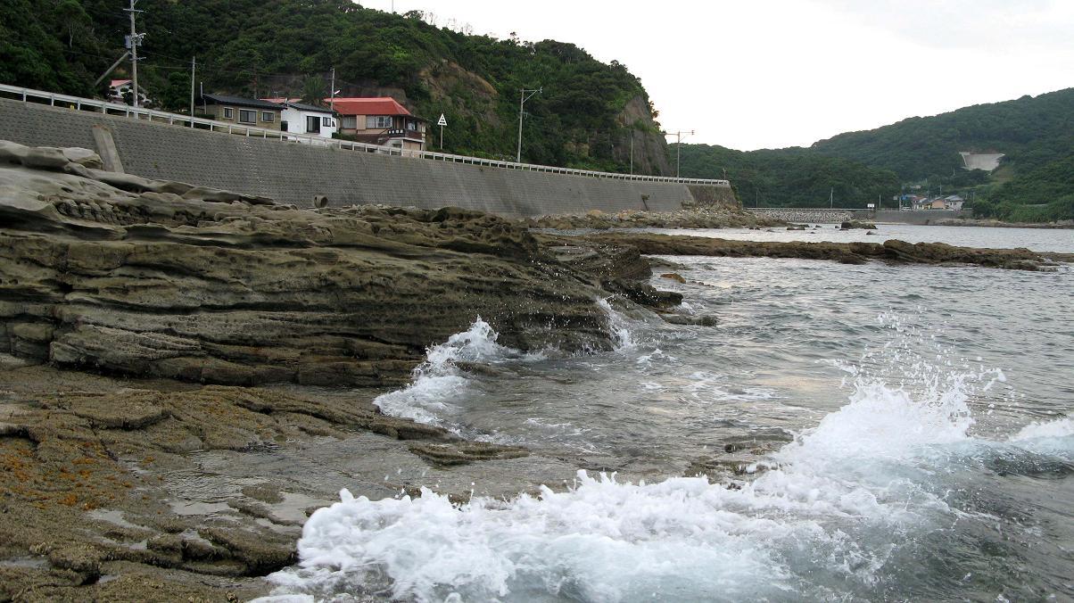民宿下の地磯は浅いけど、夜釣りで良型グレが釣れます