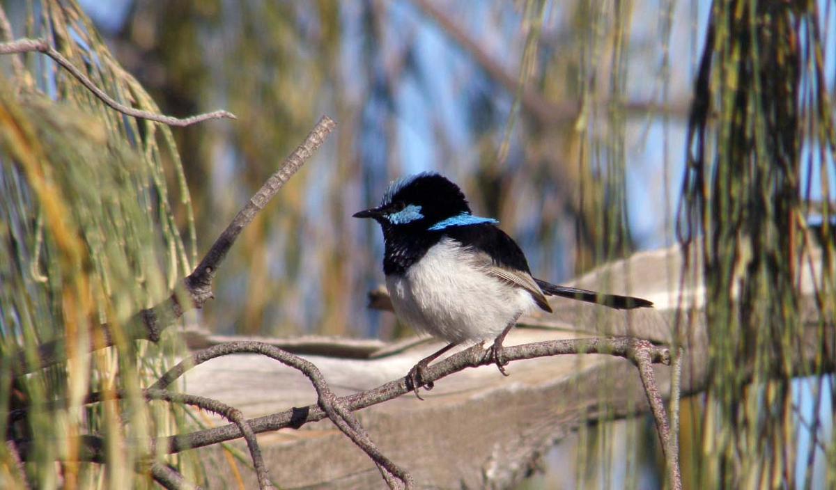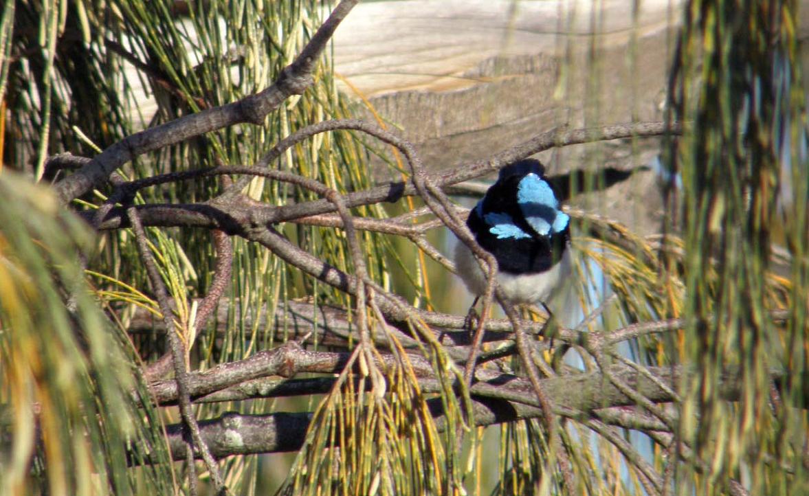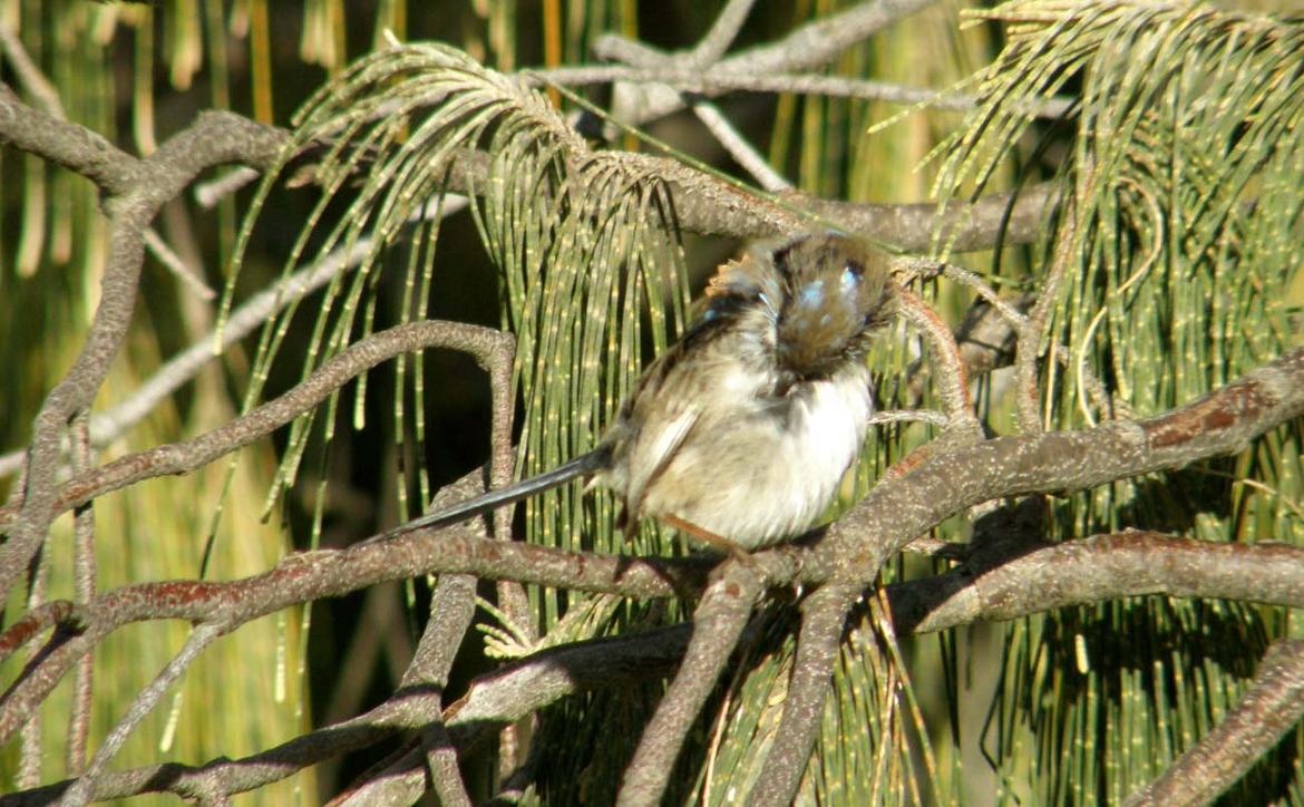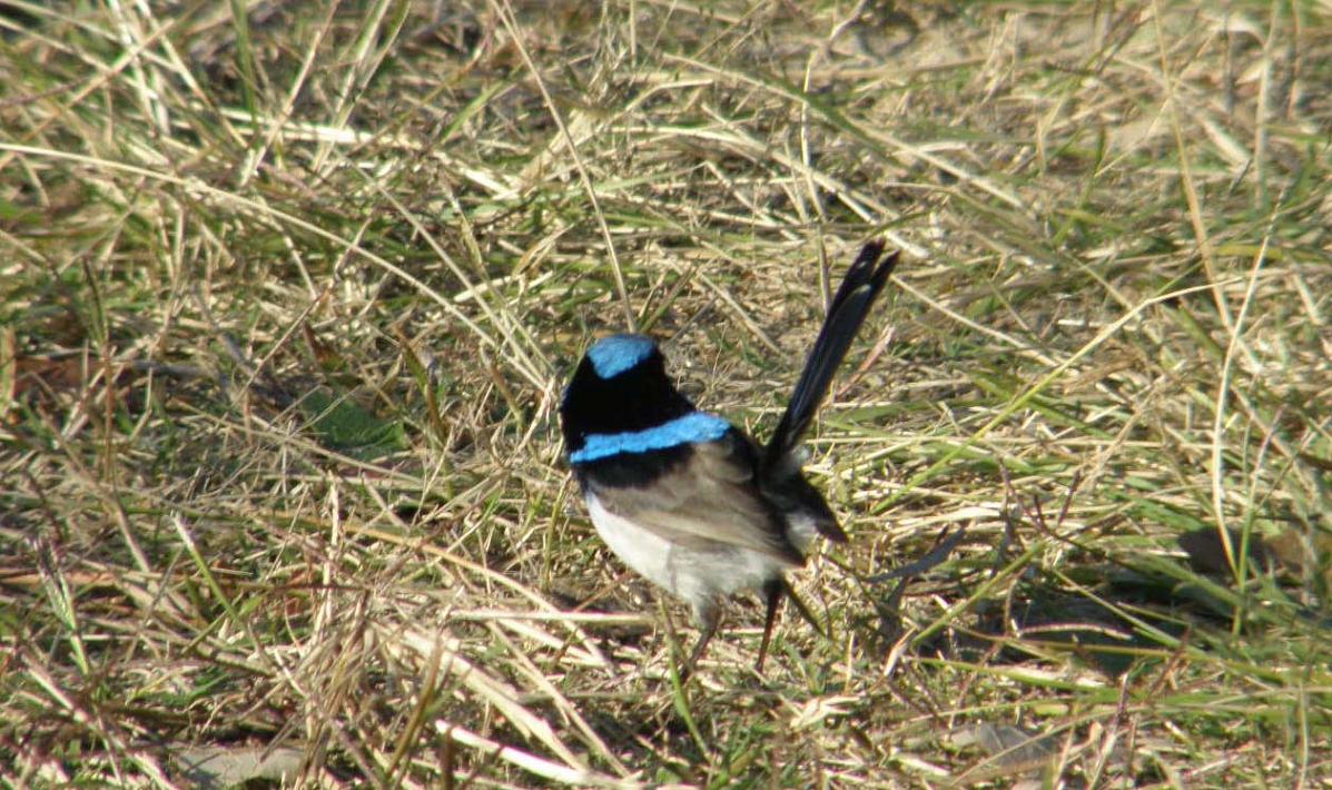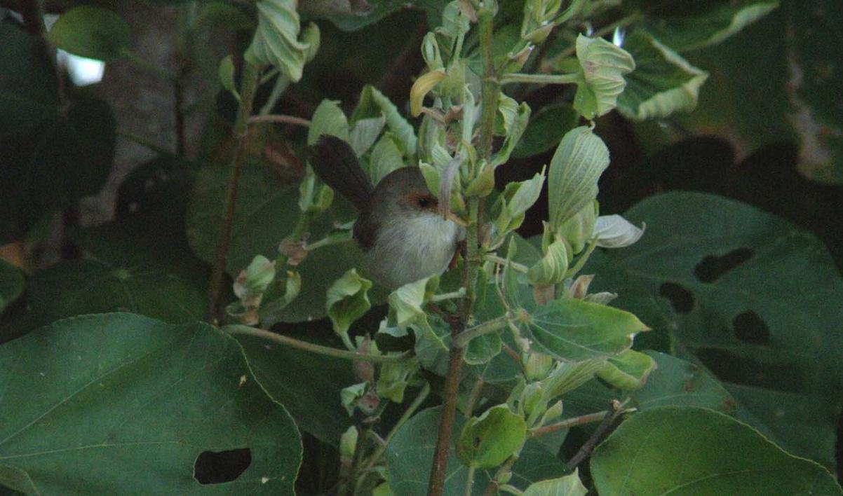 ゴールドコーストの南、タラバシラ研修所の横を、川が海に流れ込んでいます。川と研修所の柵の間を海に向かって遊歩道が続いています。色んな鳥が鳴いている中、地上に近い藪のほうから、チチチッと言っているみたいな・・・小さくてか細い声が聞こえてきます。