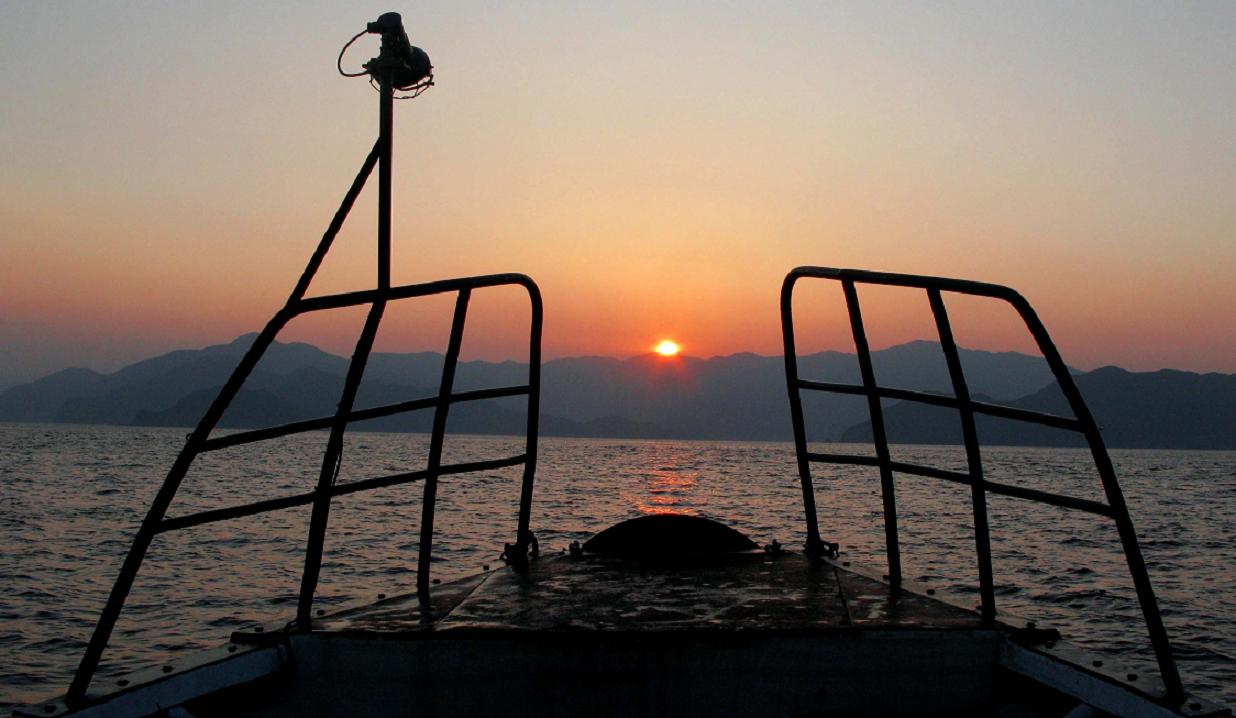 初日の朝、米水津湾を出るとこの様なお日様に出会えます