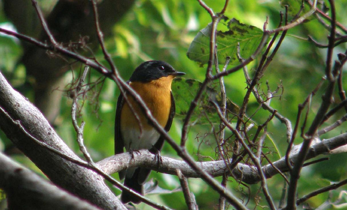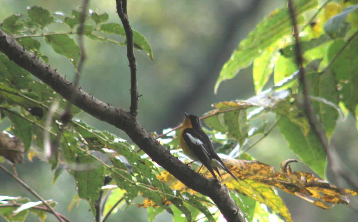 ムギマキのオスです。キビタキと良く似ています。眉班が白で短い