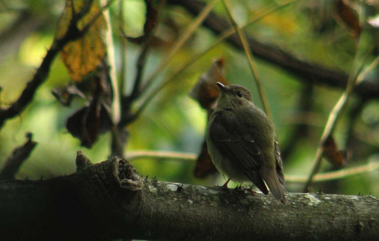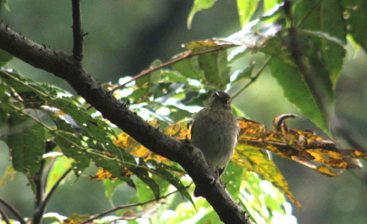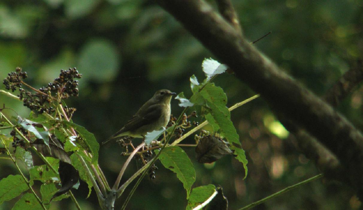 このメスの個体は、今年生まれの若いムギマキのメスと思っていたけど・・・どうでしょう?やはり咽の黄色が見えないのでキビタキのメスなのでしょうか?未だ残っているキビタキが居るのかな?