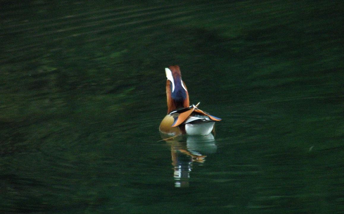 オシドリが早くもやってきたんですねえ。先日言っておられた場所だとすると超早出かと拝察します。お疲れさまでした。