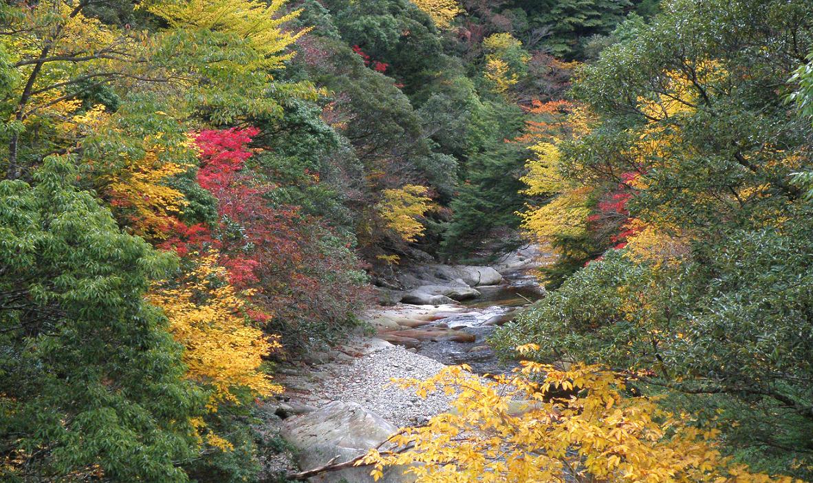 紅葉はそれほど綺麗では有りませんが、歩いて散策すれば相当に綺麗な所も有りました。一枚岩が多いので絵になる流れもあります。
