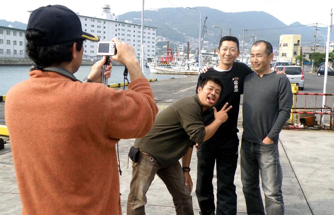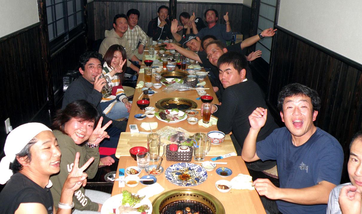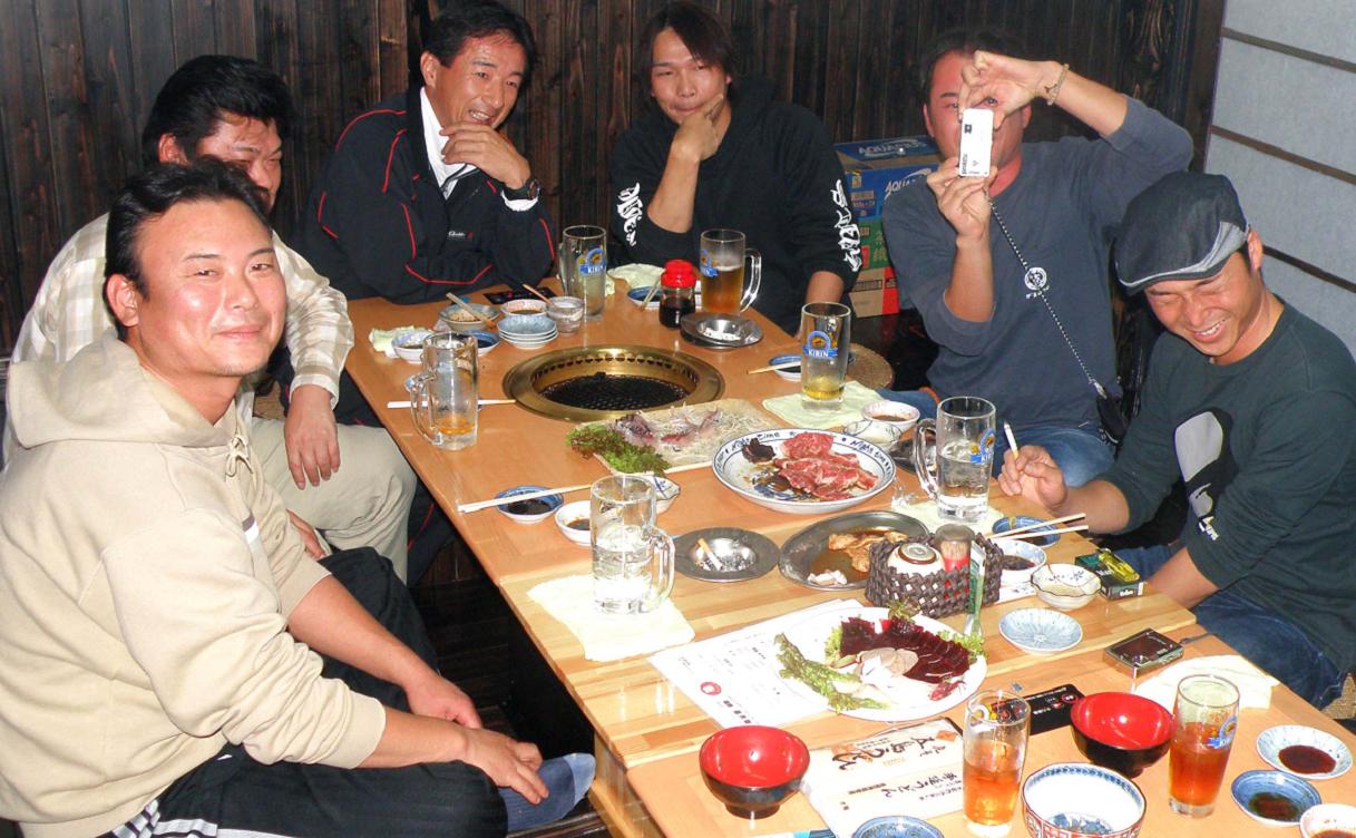 吉本会長以下、五島釣研の仲間達です。黄白さんは肉を切っていて居ませんが