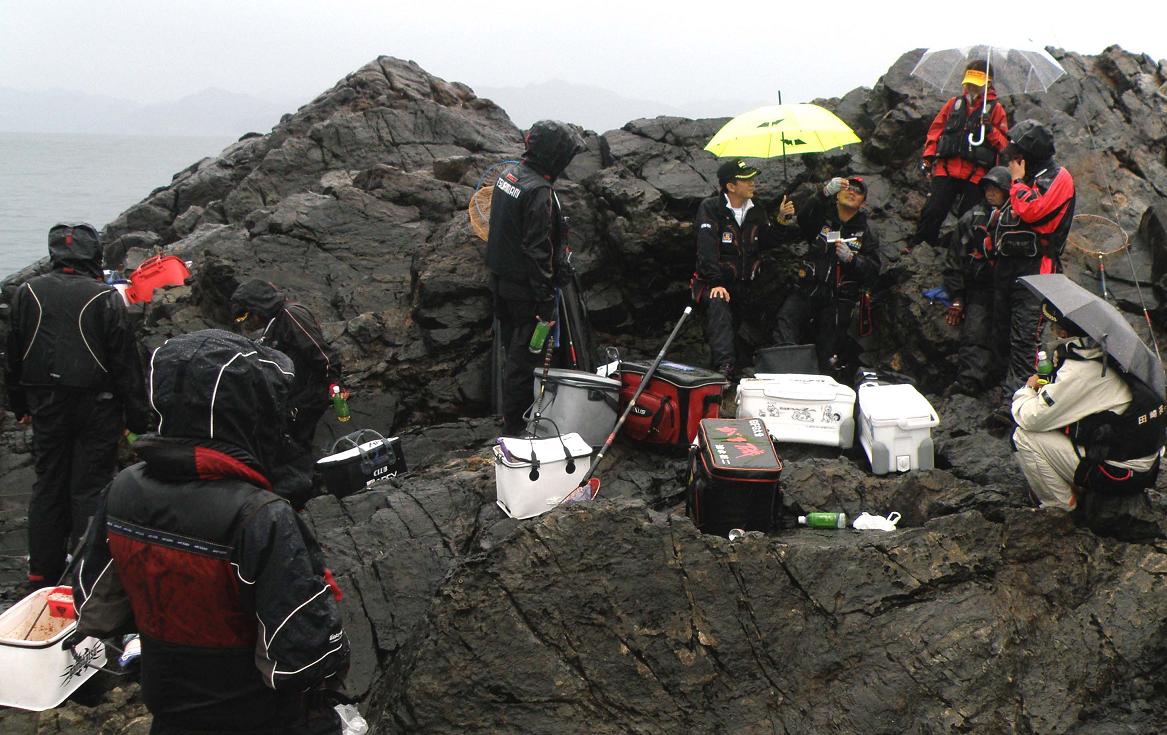 釣りは初日の15日が午前4時頃から午後5時まで、目一杯磯に居ました。11時から14時までは、全員が同じ磯に集結して弁当を食べた後、私のデモンストレーション、まったりした潮でも良い型のグレやチヌが出ました。