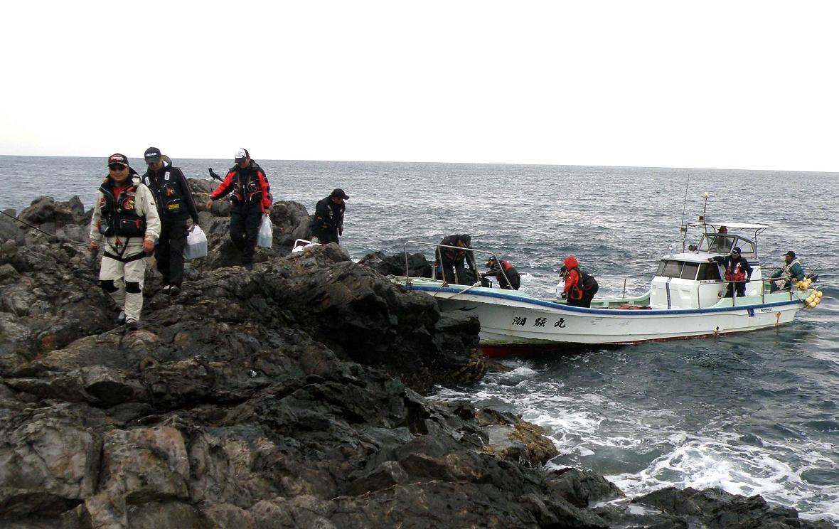 全員が同じ磯に集まる時には、小回りの効く小型船で来てくれました
