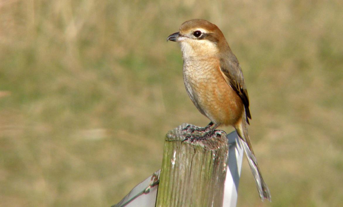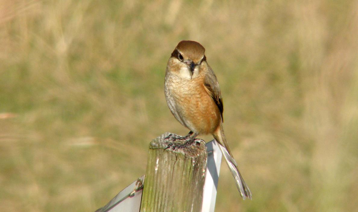大分川の河川敷、以前ノビタキが留まっていた看板です