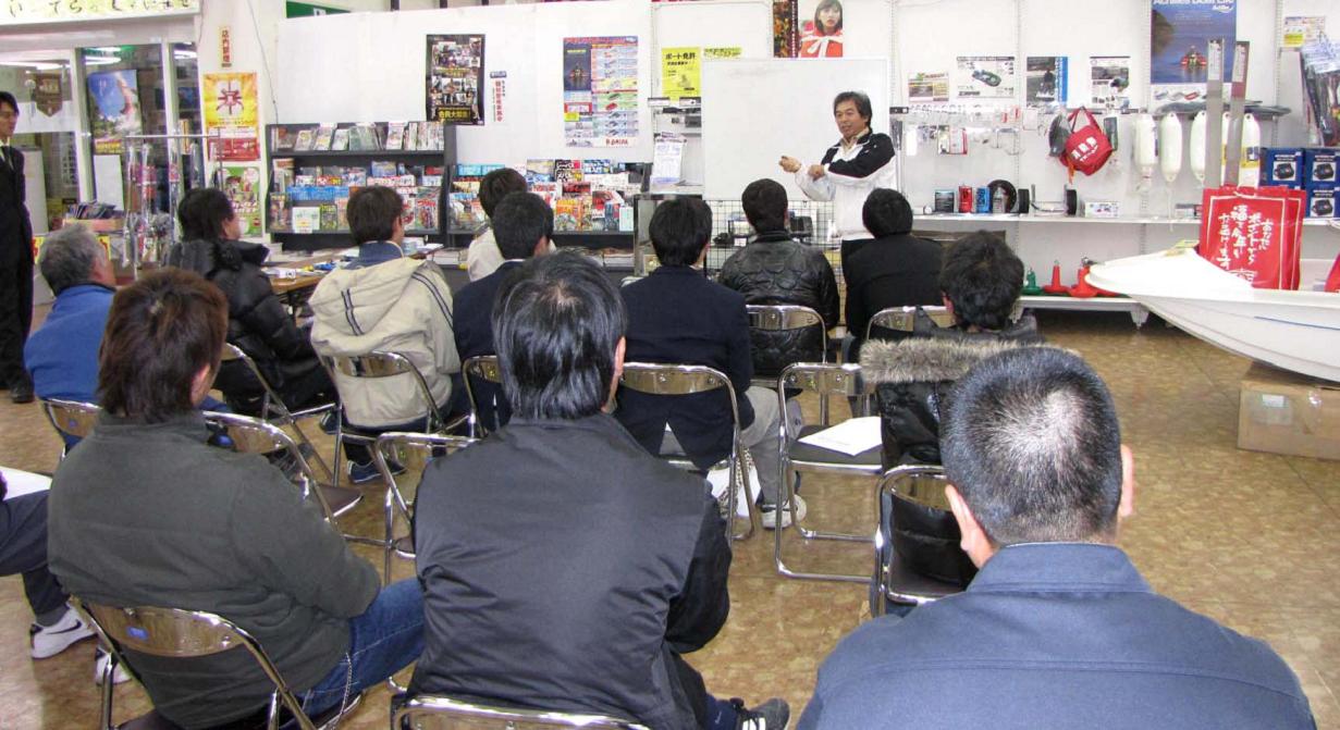 大分は私の地元で、他の釣具店で毎月講習会を行なっていたり、夏の講演会なども有るので、今回のセミナーは参加人数が少なかったですね。それでも来期の入学予定者も会場に来て頂きました。