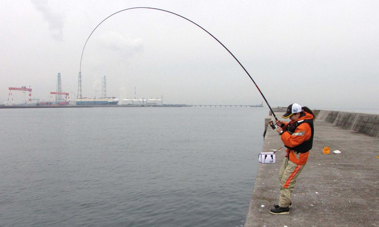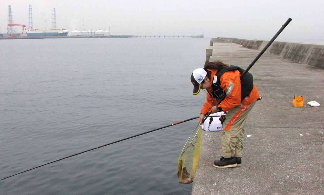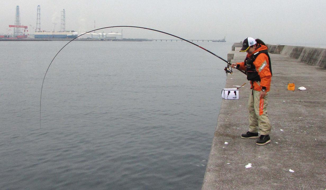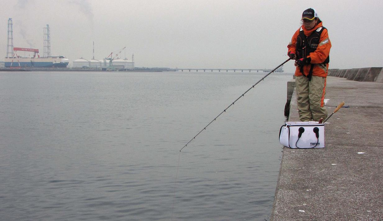 岸壁の際を狙います。サシエを際に引きつけたまま流すのが難しい